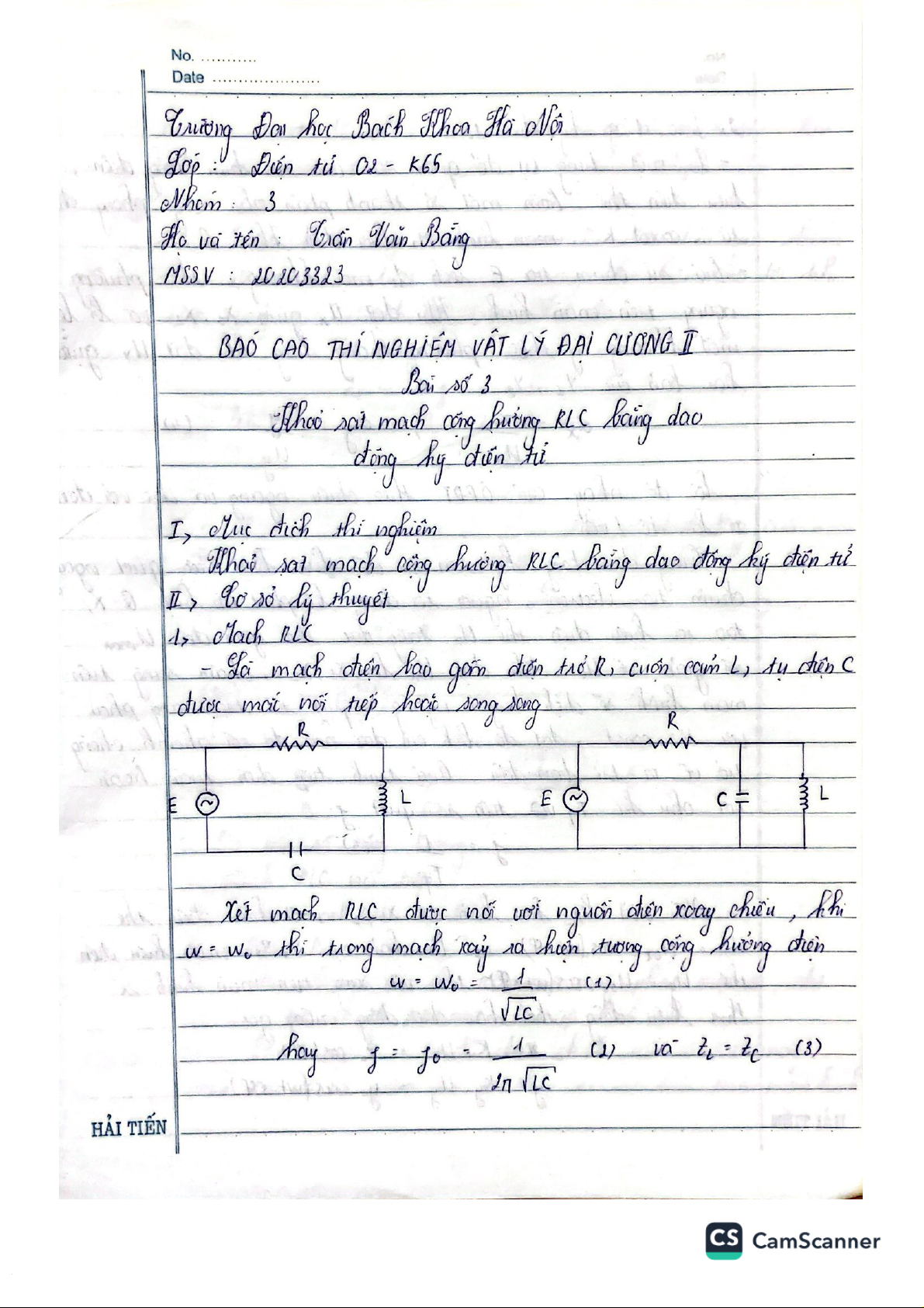 Báo cáo thí nghiệm RLC mạch điện II: Phân tích và kết quả môn Vật lý đại cương 2 | Trường Đại học Bách Khoa Hà Nội