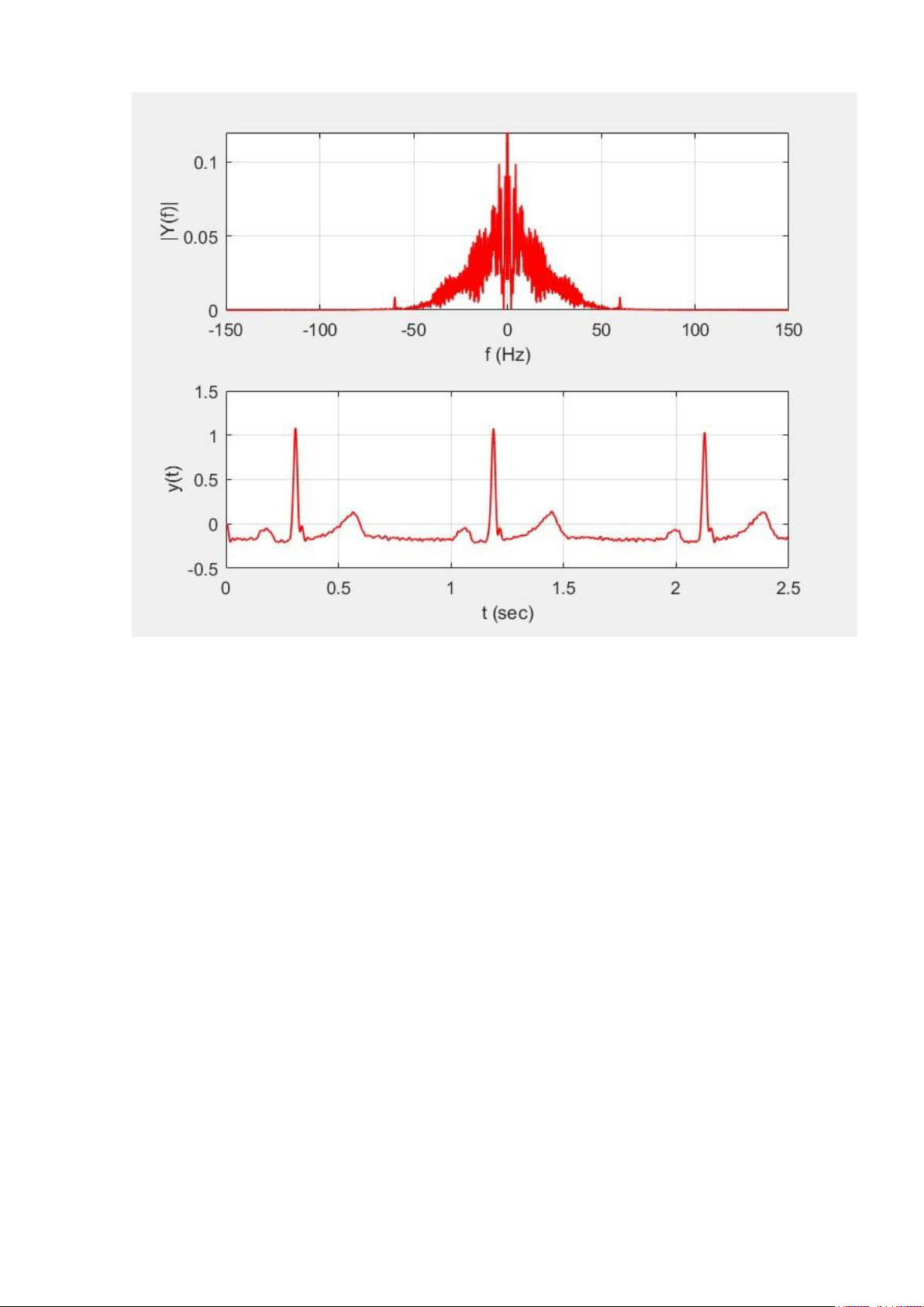 Câu hỏi 1: Chạy chương trình main.m và nhận xét về đồ thị thời gian của tín hiệu điện tim và phổ của nó.