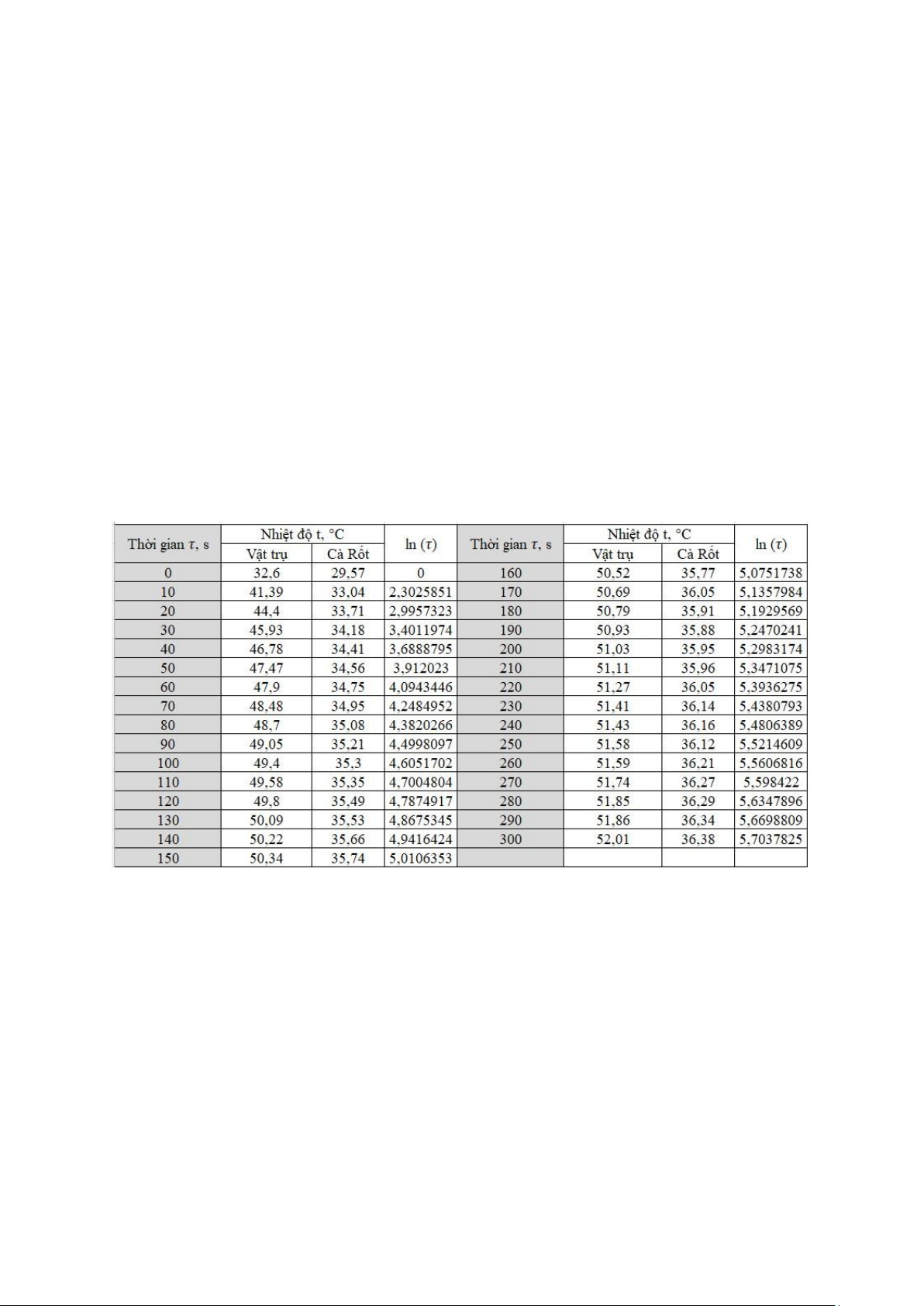 - Xác định hệ số dẫn nhiệt của Cà rốt qua thực nghiệm và tính toán lý