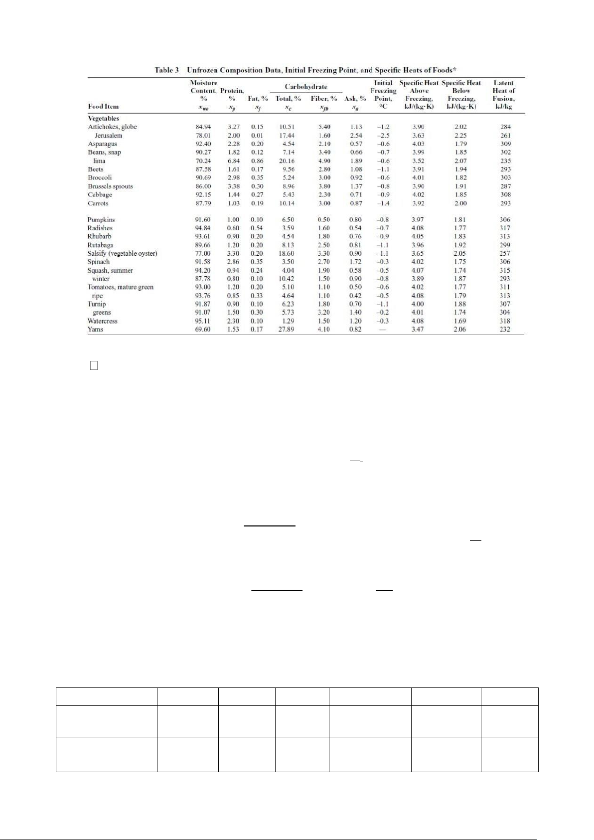 Bảng thông số cấu tạo các thực phẩm, phục vụ tính hệ số dẫn nhiệt của vật liệu