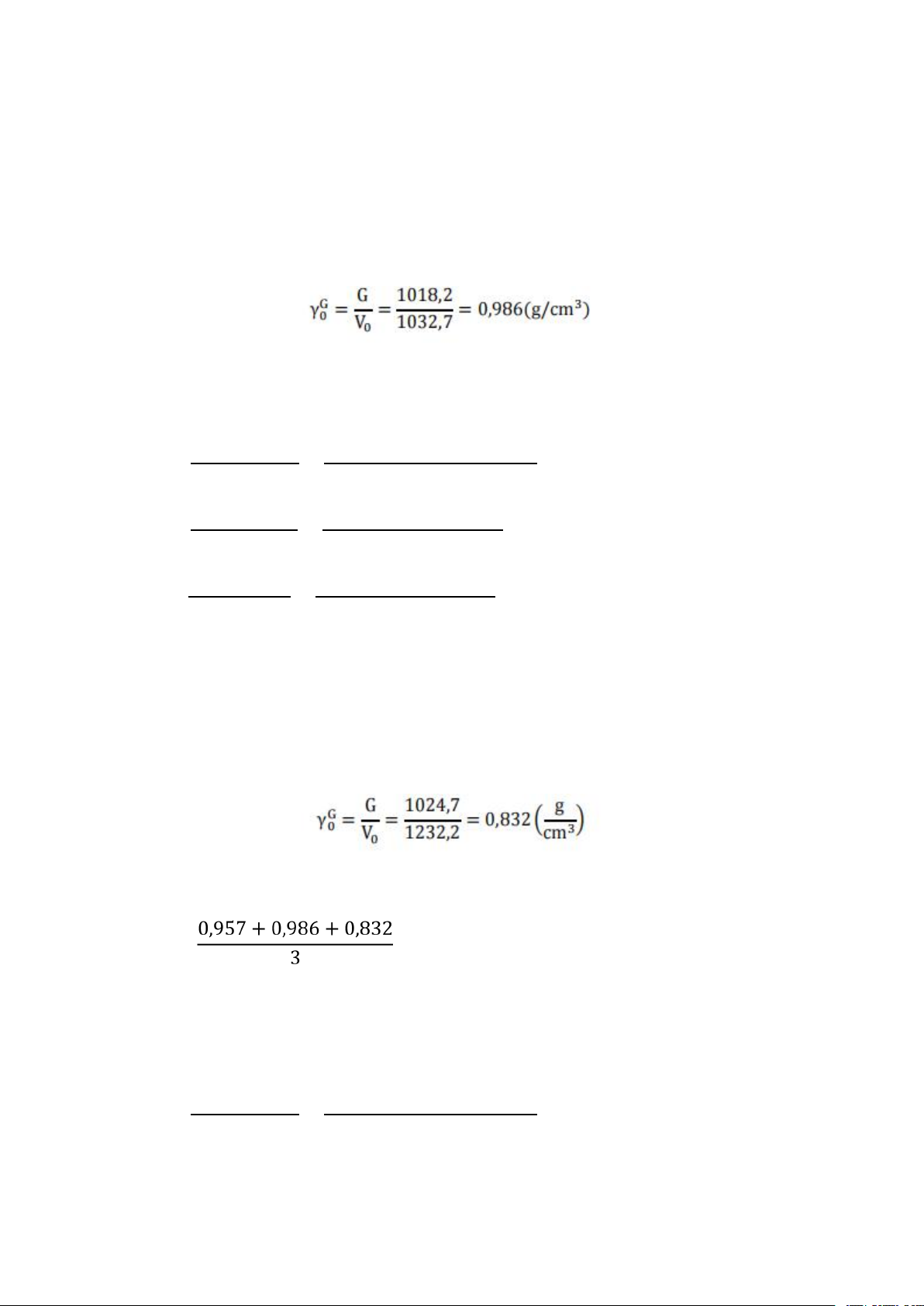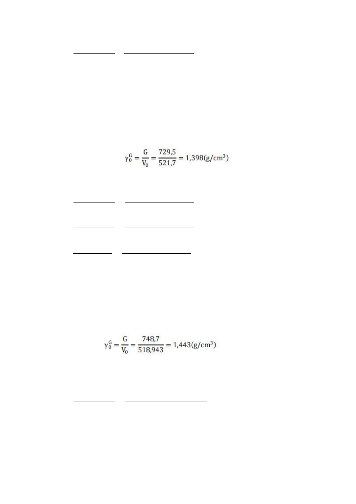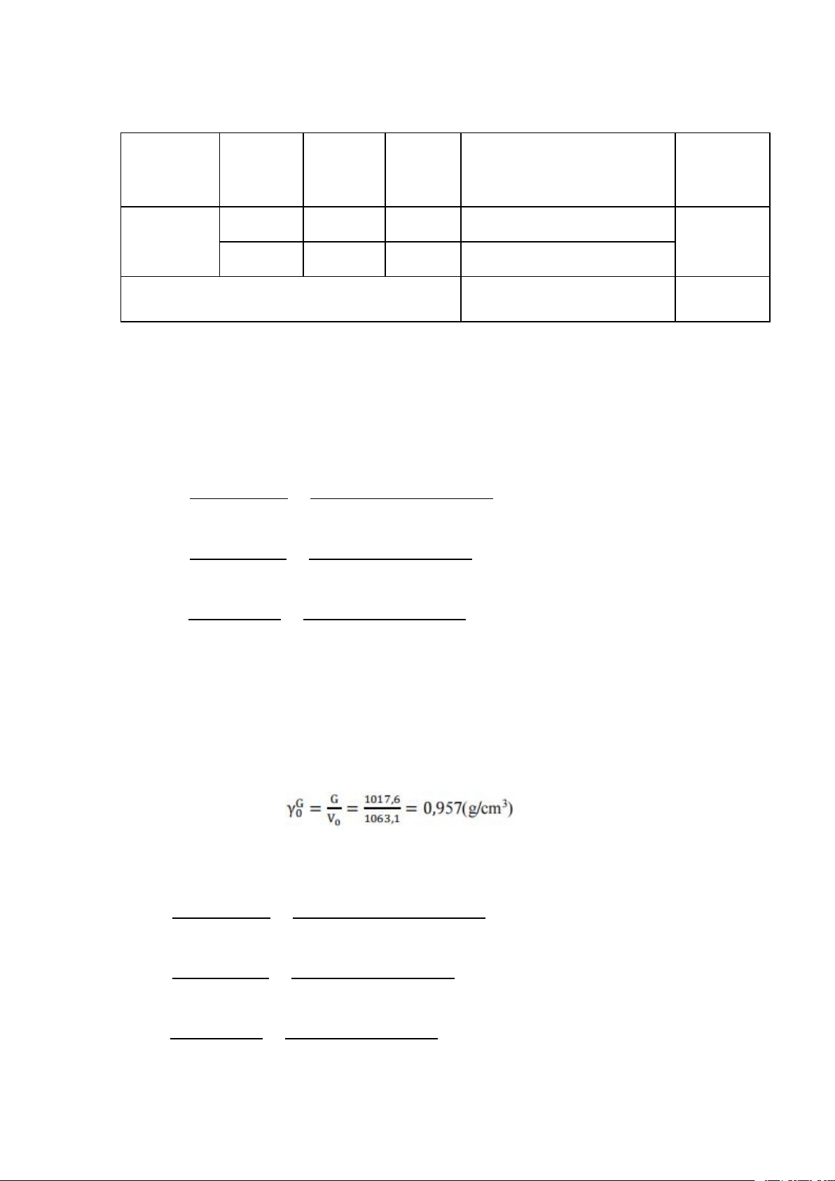 Khối lượng thể tích trung bình: 1.404+1.403 = 1.4035 (g/cm3) 2