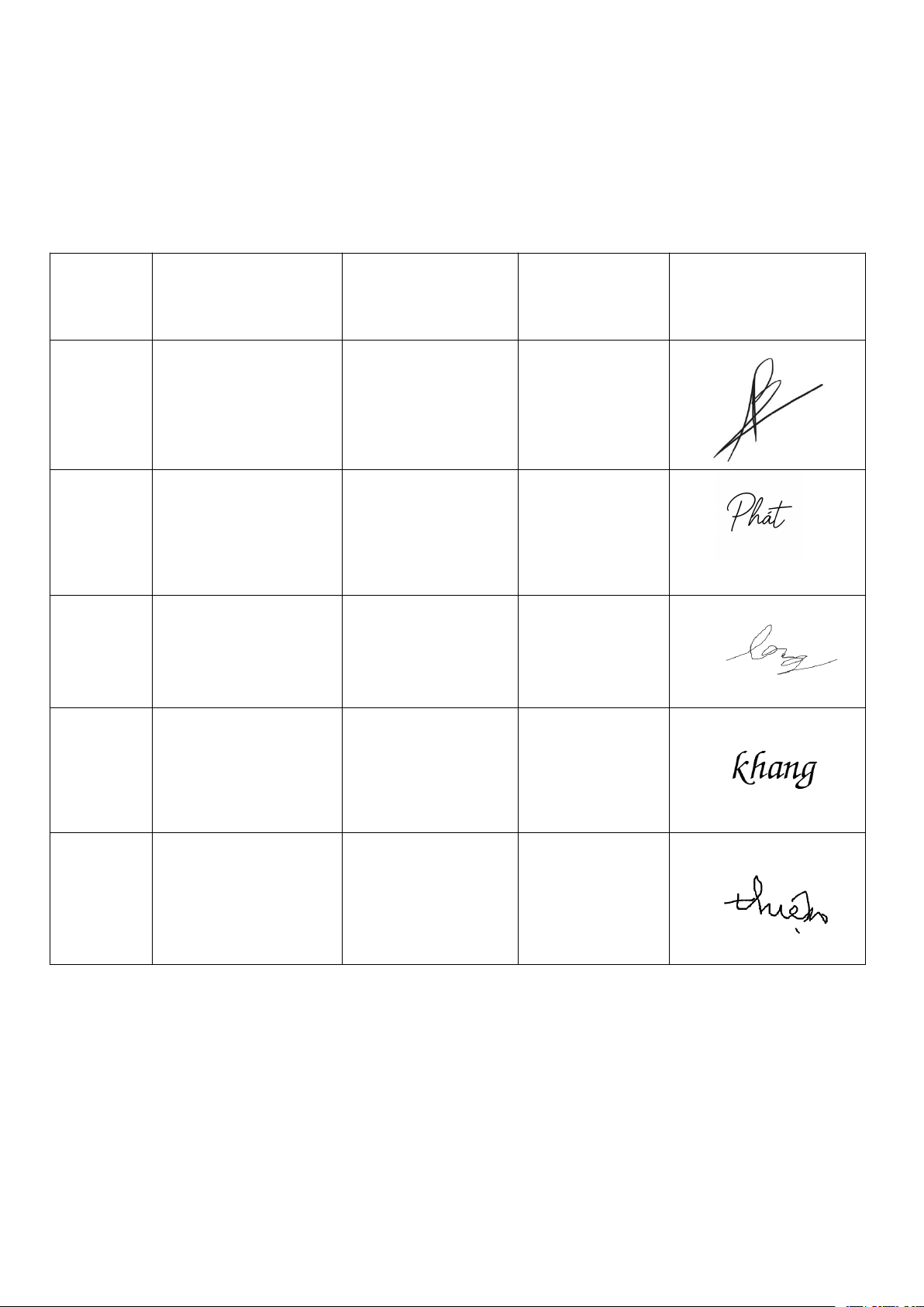 BẢNG DANH SÁCH THÀNH VIÊN VÀ PHÂN CÔNG NHIỆM VỤ MSSV HỌ VÀ TÊN CÔNG VIỆC HOÀN CHỮ KÝ THÀNH 2310232 Lương Thái Bảo Bài 1 100% 2114377 Nguyễn Ngọc Bài 2 100% Thành Phát 2211879 Huỳnh Phi Long Bài 3 100% 2311410 Hà Duy Khang Bài 4, tổng hợp 100% word, làm báo cáo 2213246 Dương Quốc Thiện Bài 5 100% BÀI 1