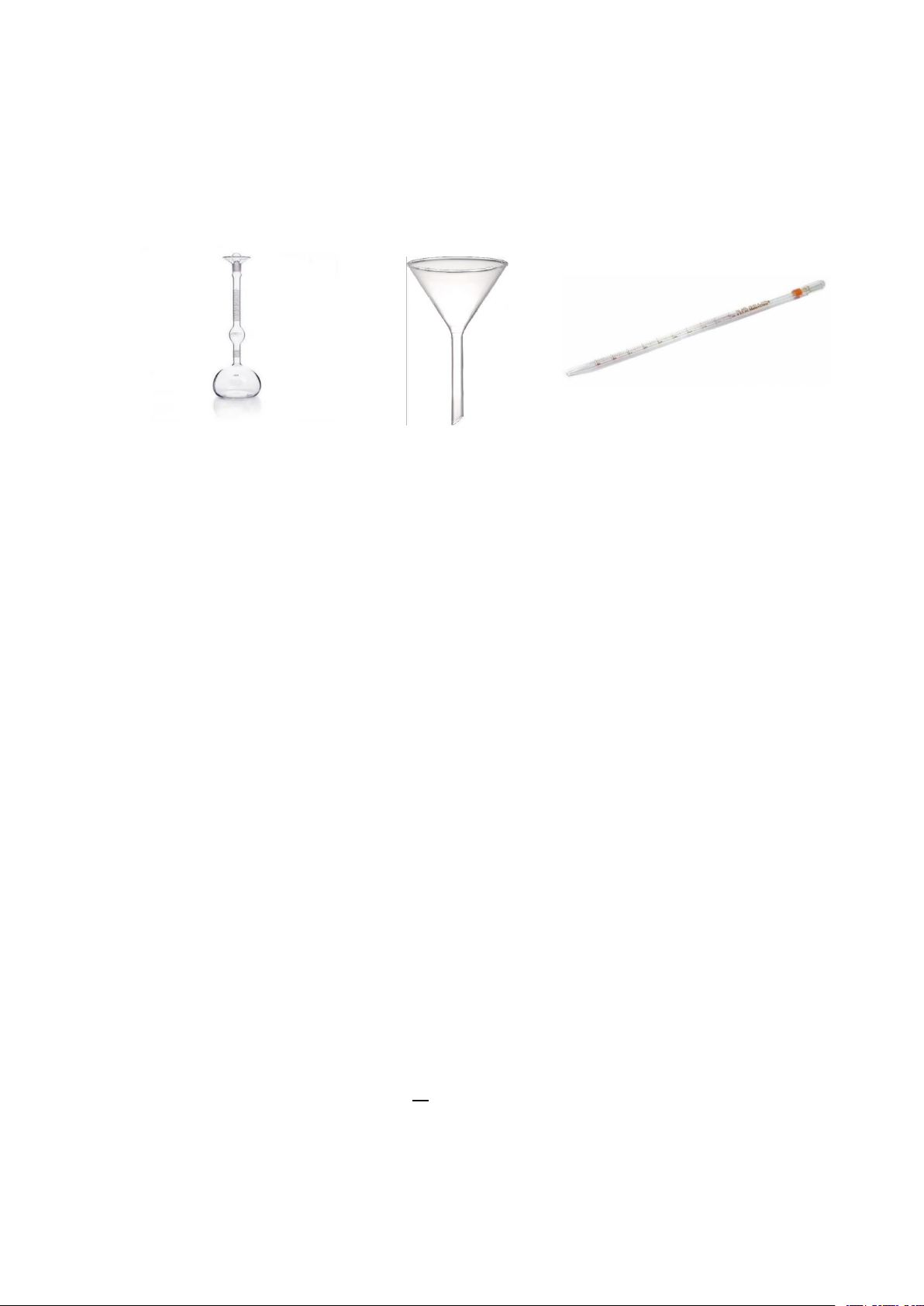 Hình 1.1: Bình Lechatelier Hình 1.2: Phễu thuỷ tinh cổ dài Hình 1.3: Ống pipet. 2.2 Tiến hành thử