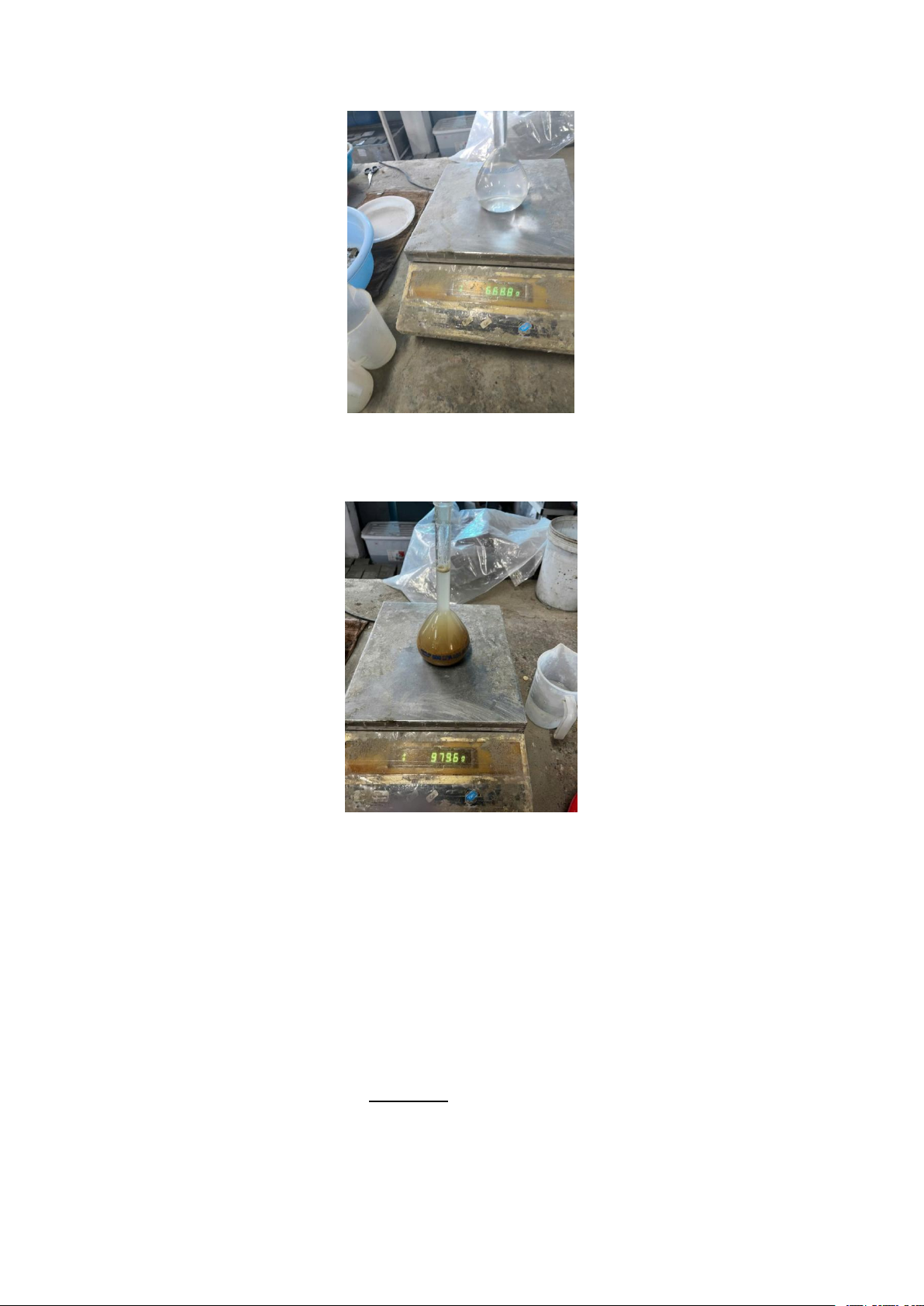 Hình 1.8: Khối lượng cân (bình + mẫu thử + nước 1) ở lần 1 và 2 3.4. Nhận xét.