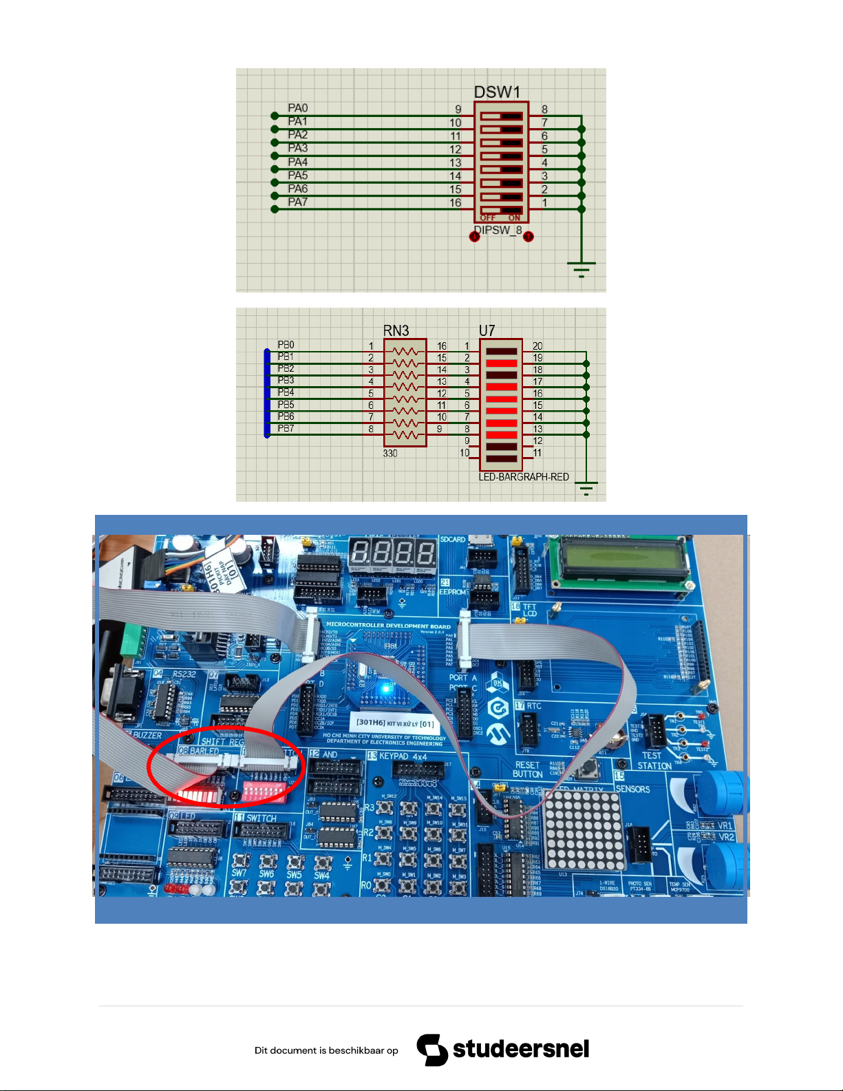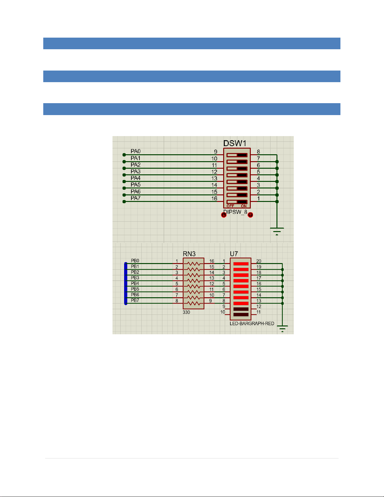 a) Kết nối 1 port của AVR (VD PORT A) vào dip switch. Kết nối 1 port khác vào bar LED (Ví dụ PORT B) 1