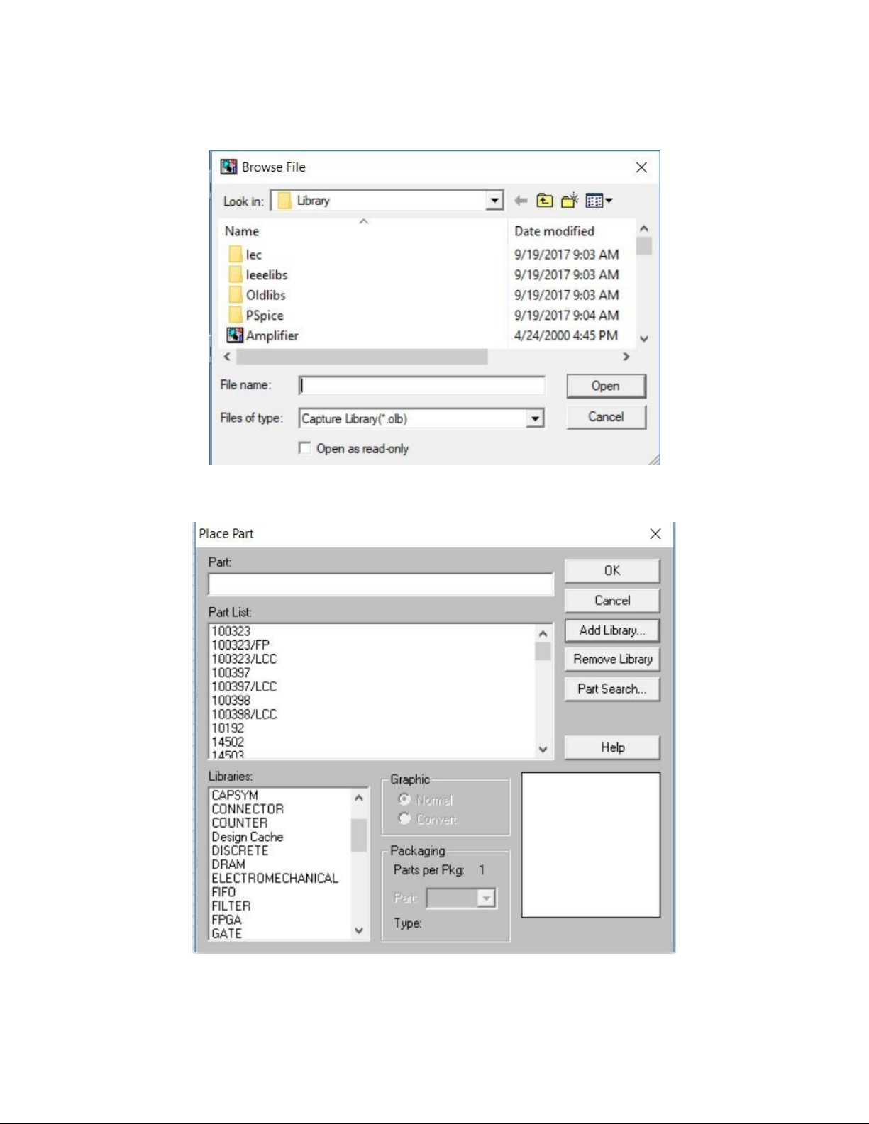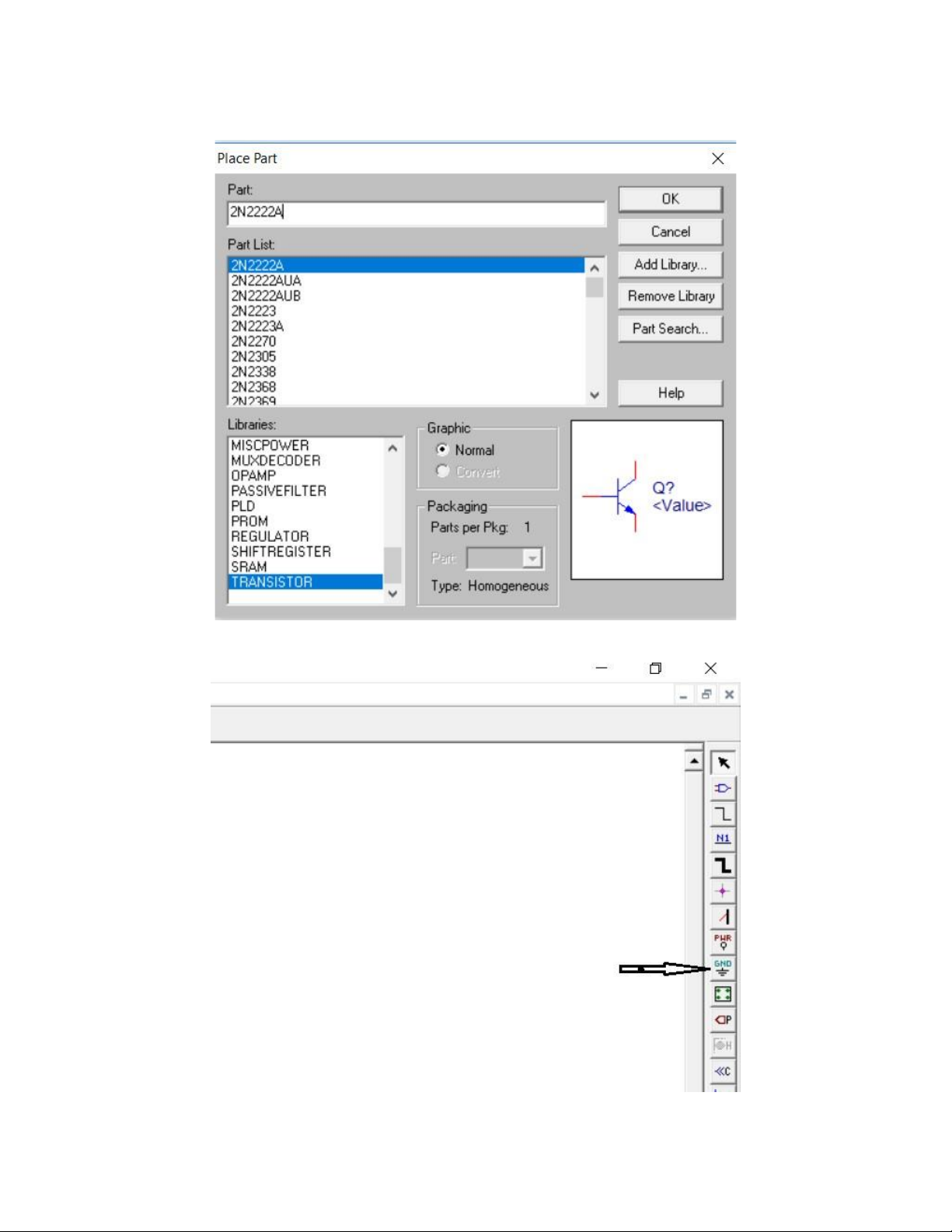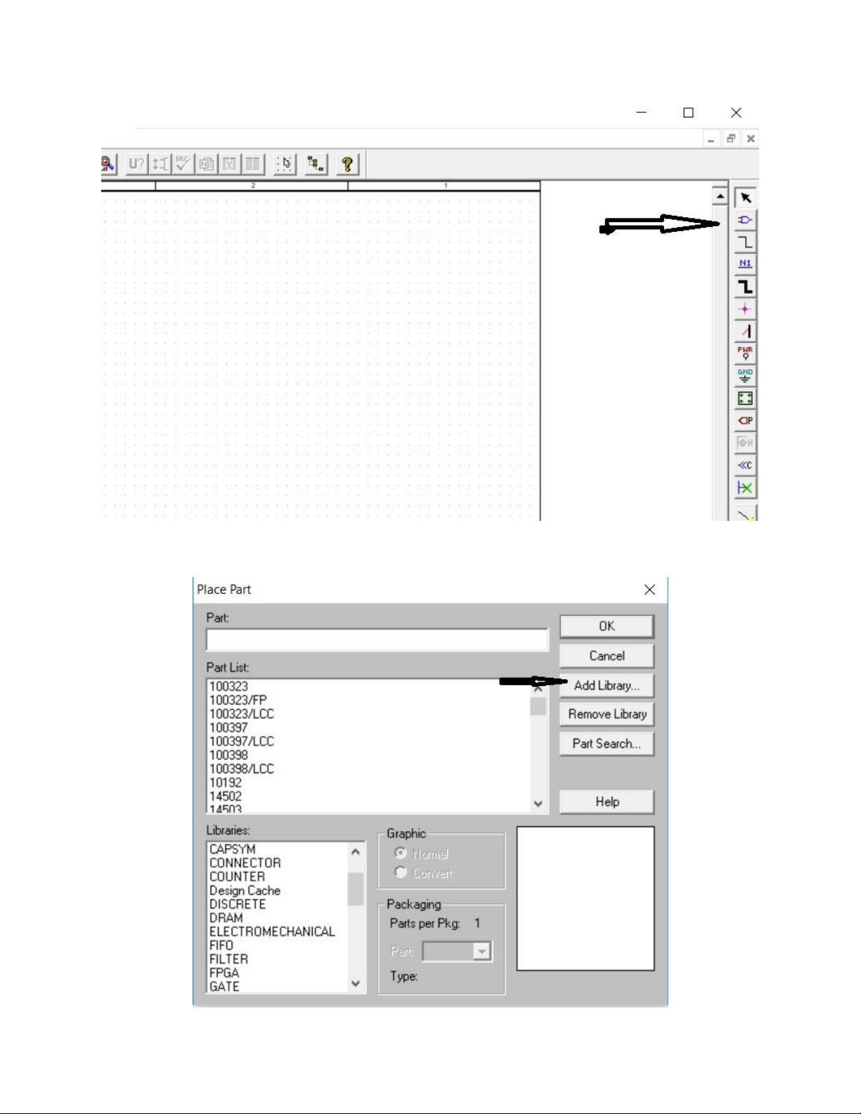 Hộp thoại Place Part xuất hiện,tiến hành lấy linh kiện trong thư viện ra,nhấp chuột vào Ađ library..