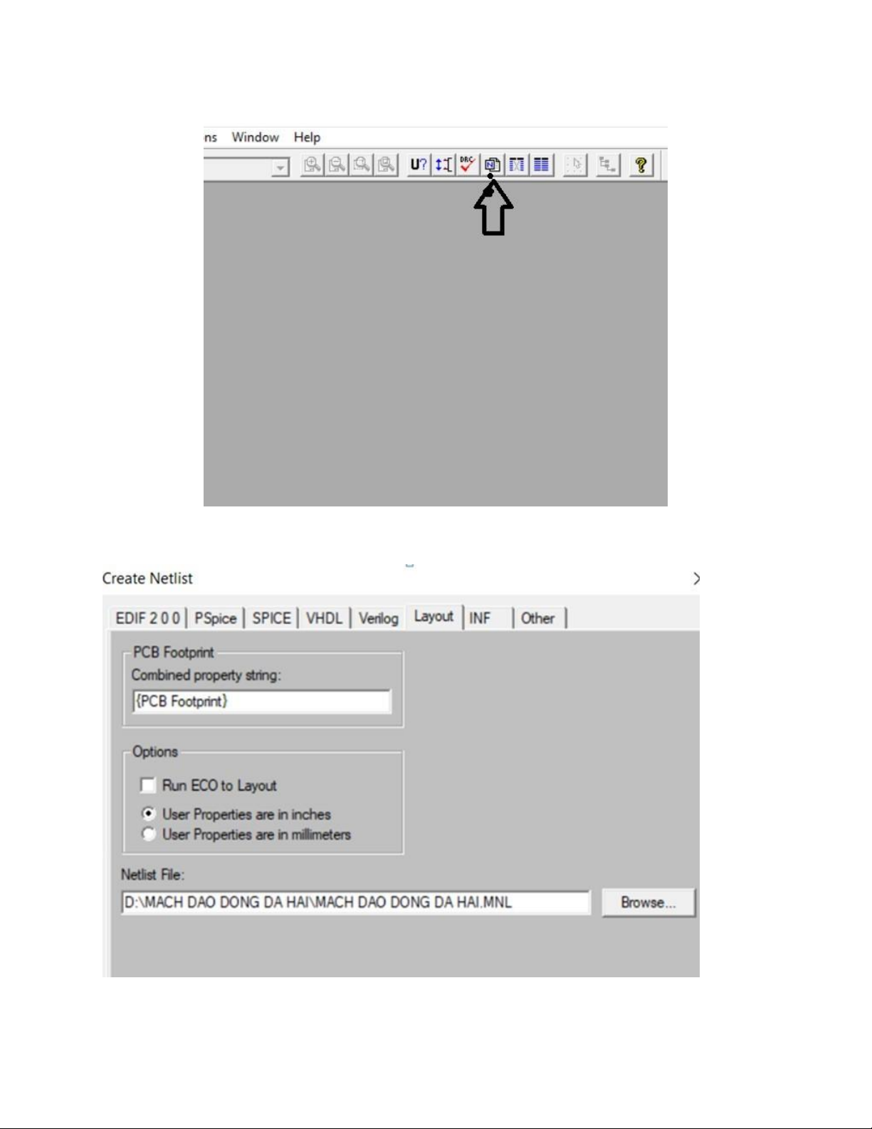 Để có thể chuyển sang bước vẽ mạch in bằng Layout ta cần tạo file “.mnl” trước