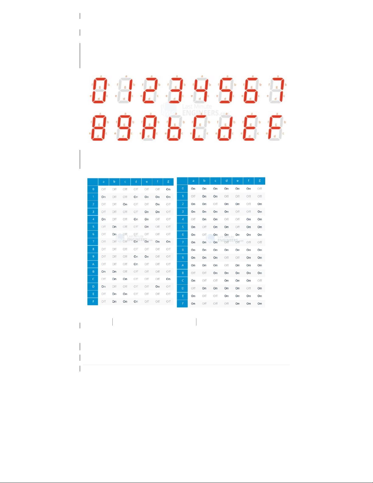 phải được bật sáng. Tương tự, các chữ số khác nhau từ 0 đến 9 và các ký tự từ A đến F