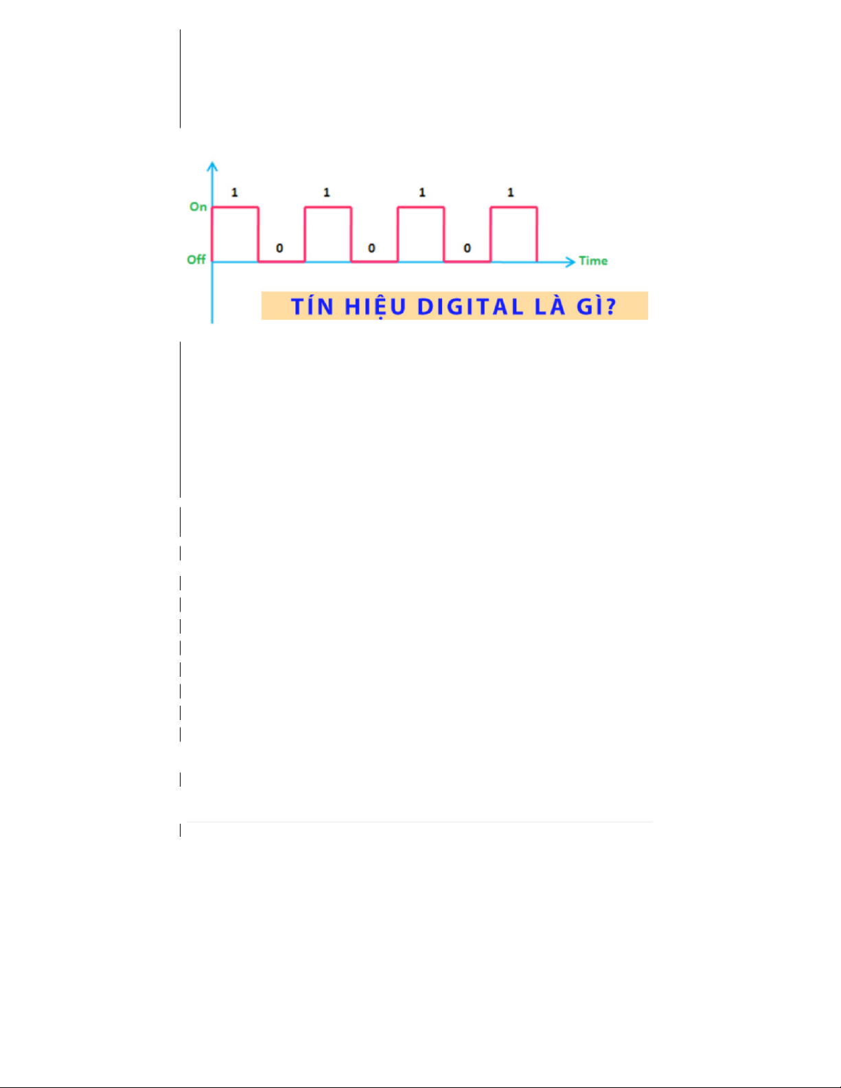 tại bất kỳ một thời điểm nào, tín hiệu chỉ được thể hiện thông qua chữ số 0 và 1. Với 1