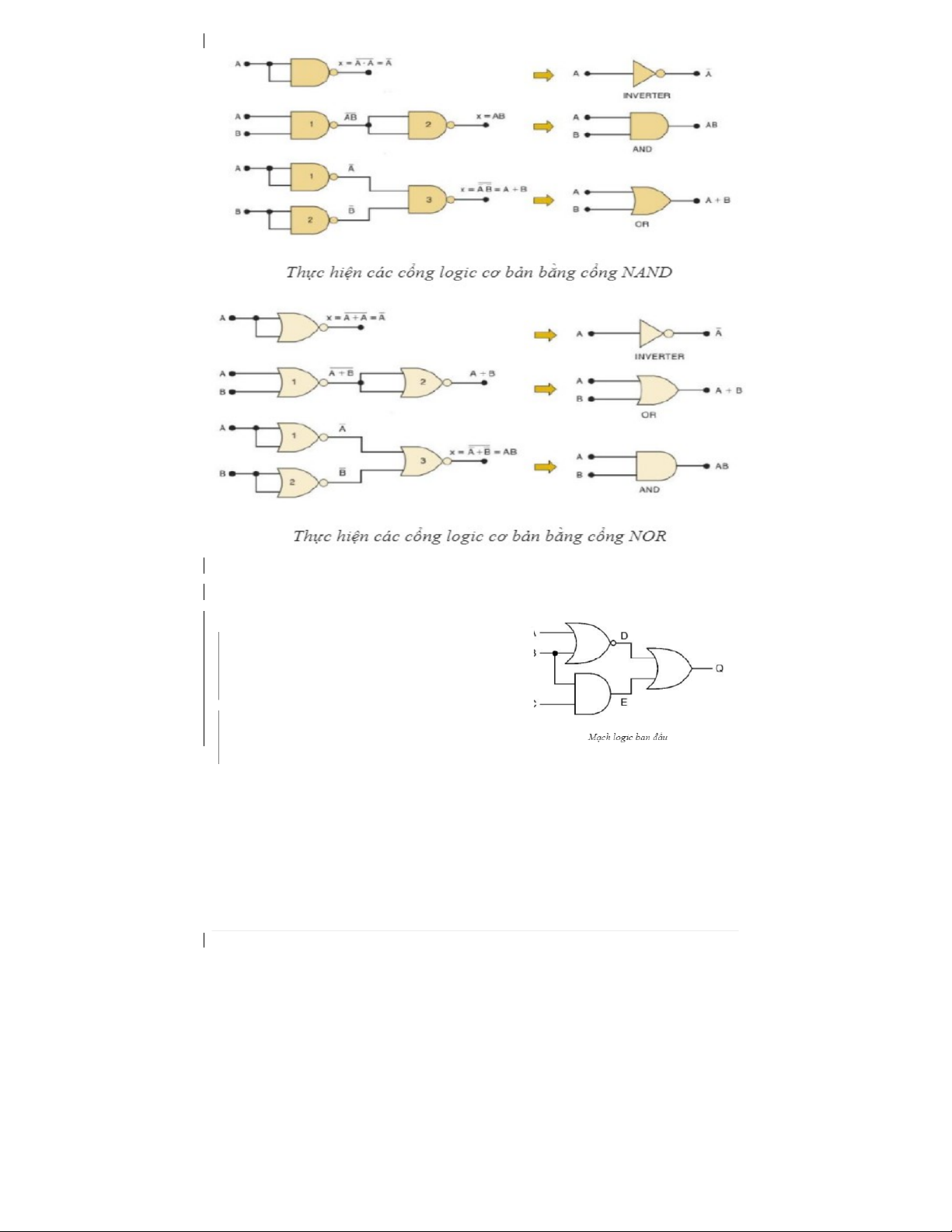 NAND (hay cổng NOR), chúng ta sẽ biến đổi cổng NAND (hay cổng NOR) để