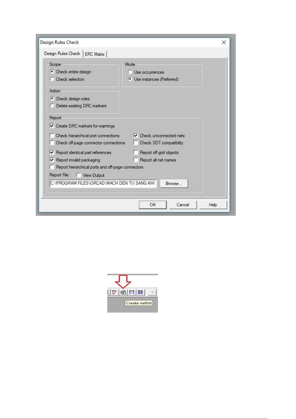 Nếu không, ta cần phải sửa các lỗi trong mạch mà Session Log đã chỉ ra. lOMoAR cPSD| 61531195 Hình 1.13: Hộp thoại DRC 1.3 Tạo file netlist