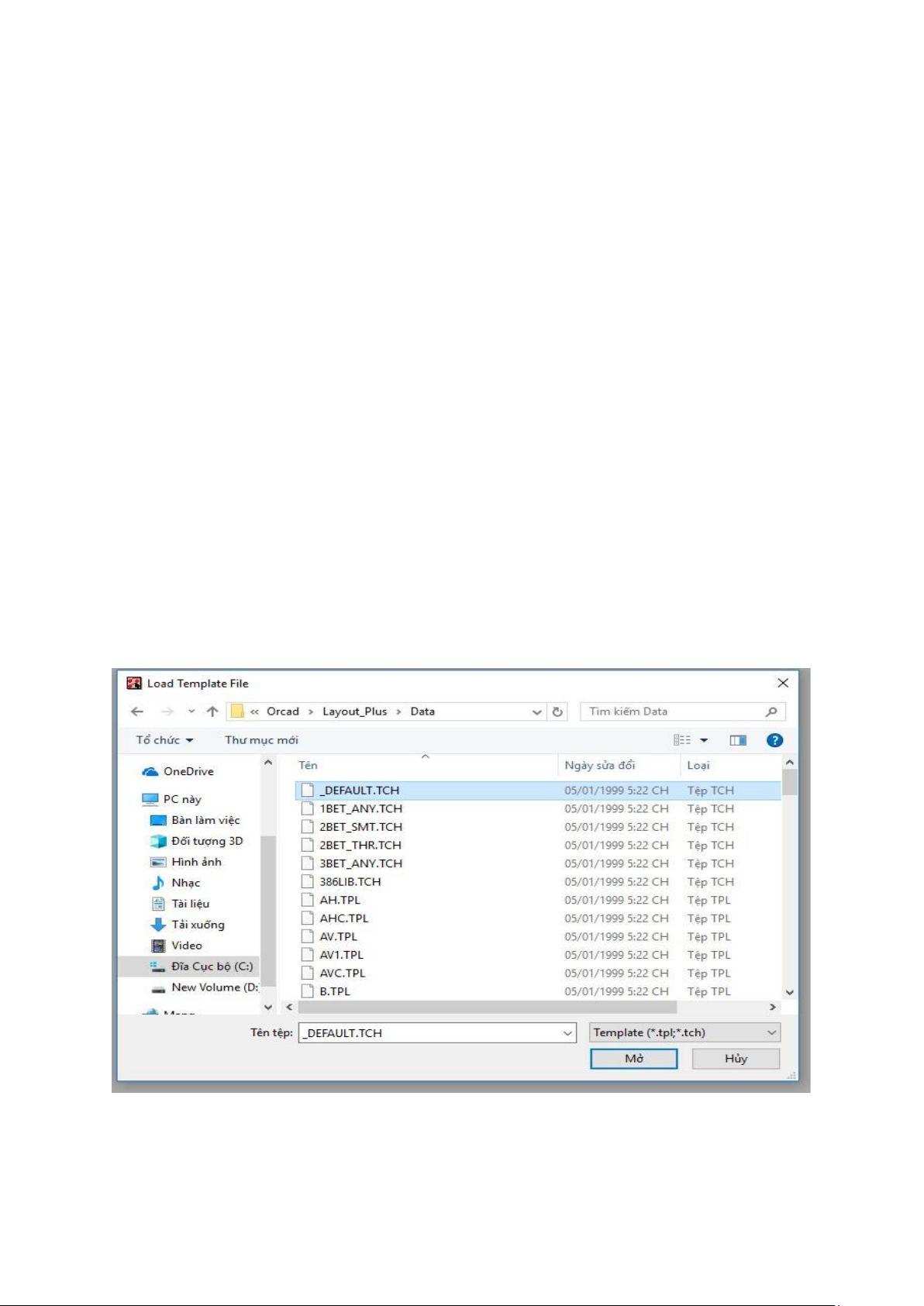 template file, ta vào đường dẫn sau Orcad > Layout_Plus > Data và chọn _DEFAULT.TCH, ấn Mở