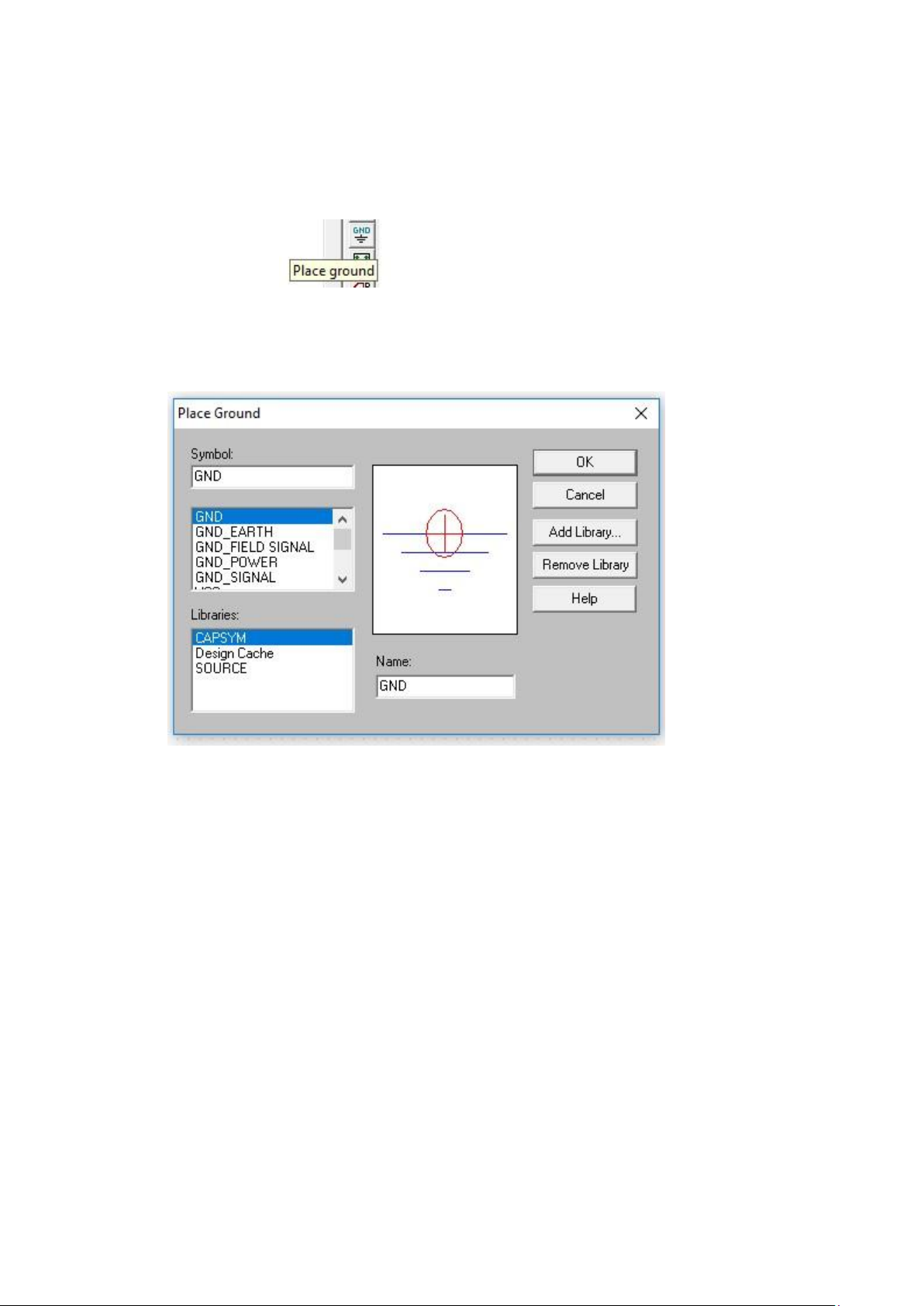 Tiếp tục, ta tìm 2 chân nối đất và nối nguồn của mạch. Trên thanh công cụ
