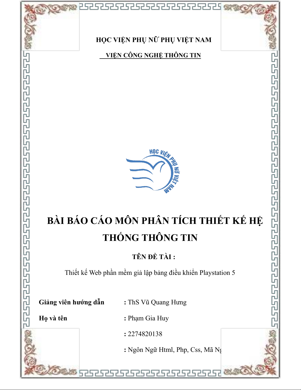 Đề tài:”Web phần mềm giả lập Playstation 5” đã được thực hiện với nội dung sau:
