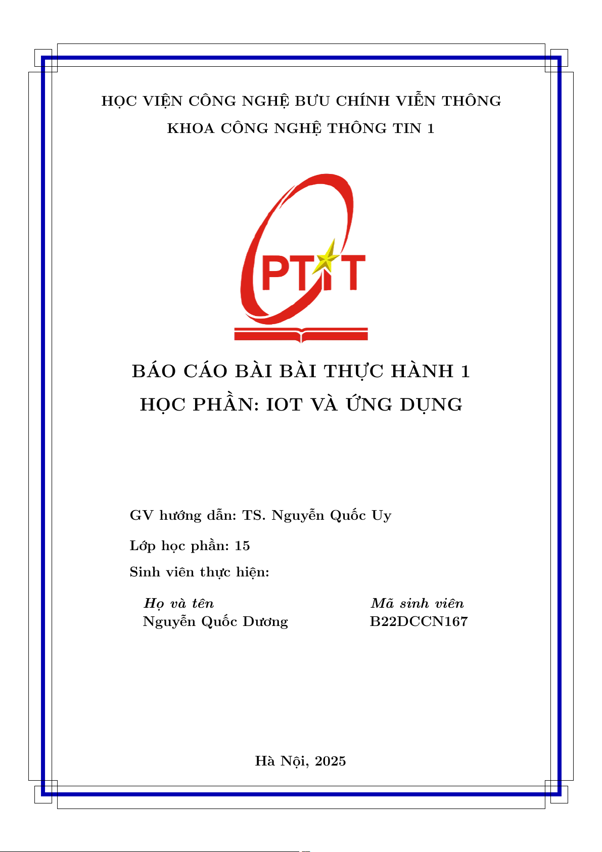 Báo Cáo Thực Hành 1: IoT và Ứng Dụng | Iot và ứng dụng | Học viện Công nghệ Bưu chính Viễn thông