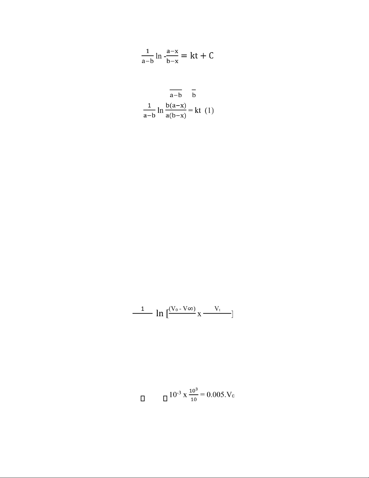 của ester ban đầu và ở các thời điểm t sẽ tỷ lệ tương ứng với (V0 - V∞) và (Vt - V∞). - Có nghĩa là: b = A. V0 a = A(V0 − V∞) (b − x) = A.Vt