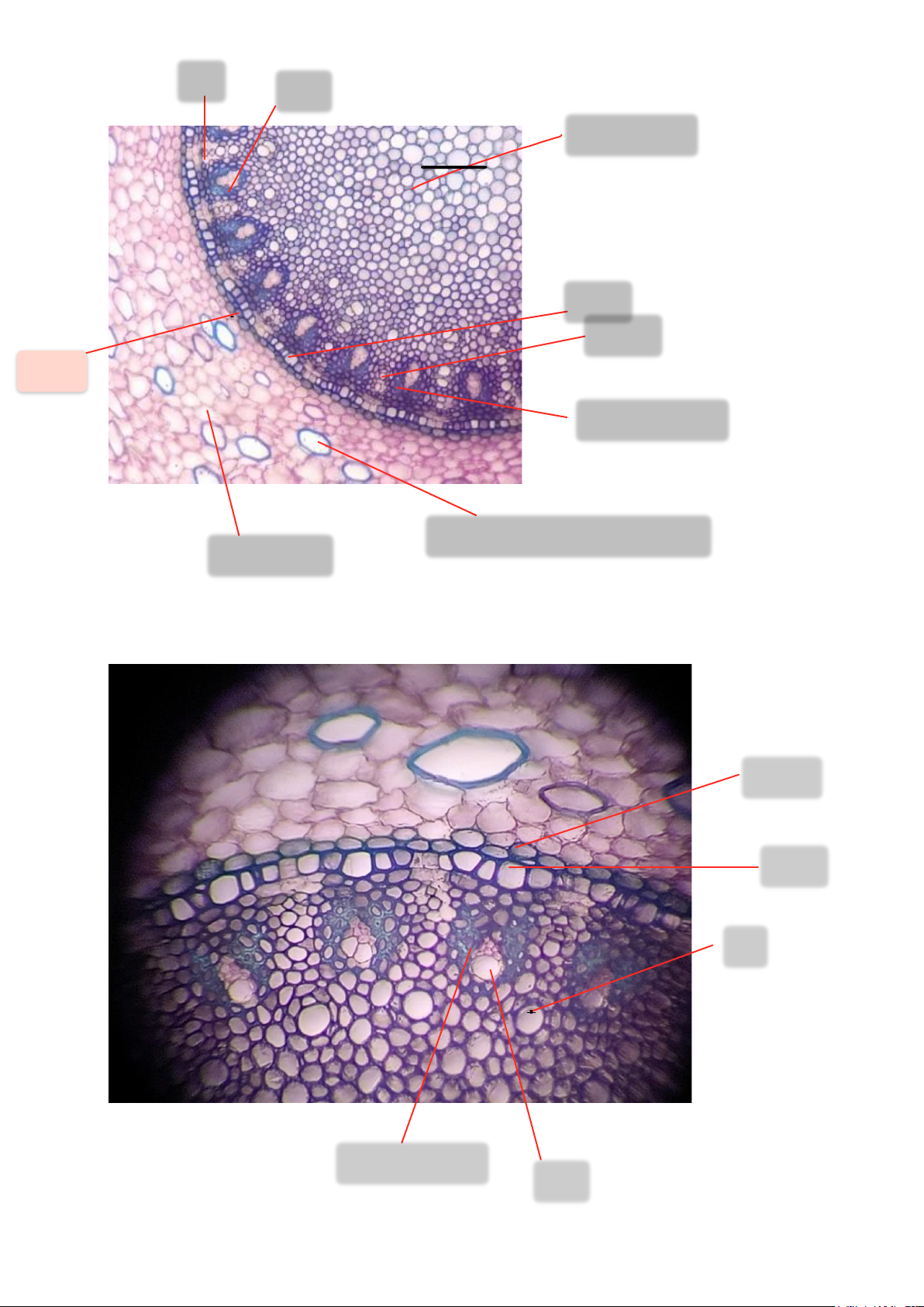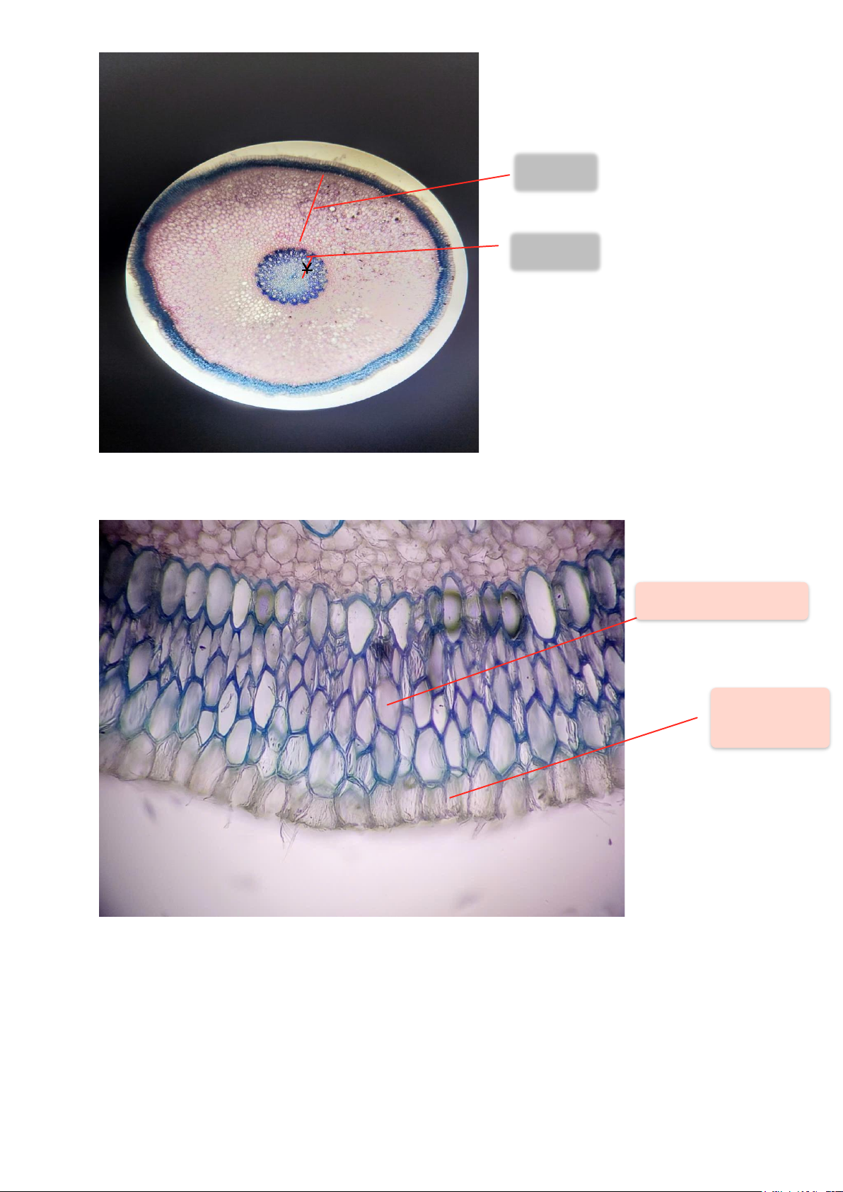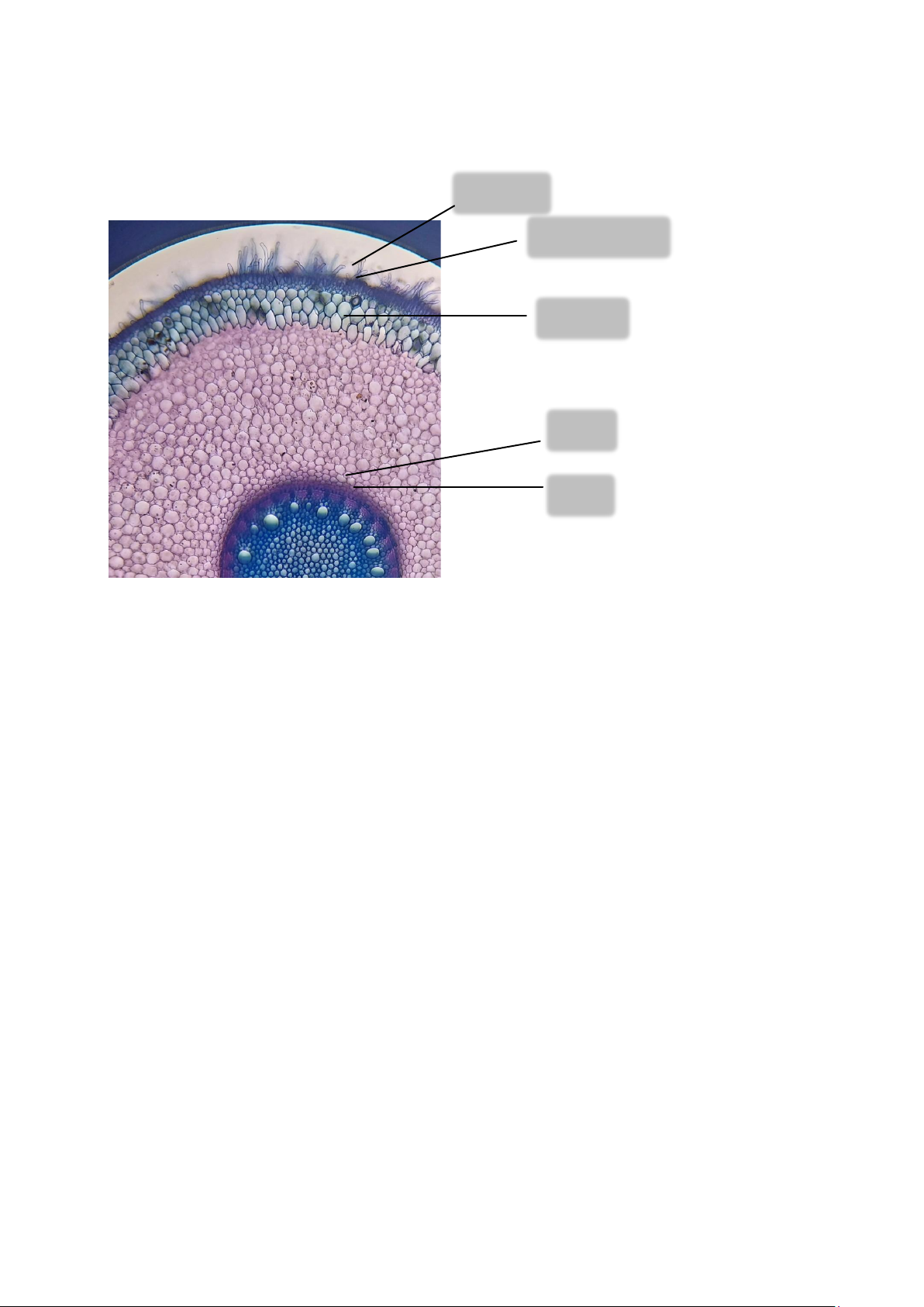 - Mô mềm vỏ: Bắt màu tím nhạt khi nhuộm, các tế bào có