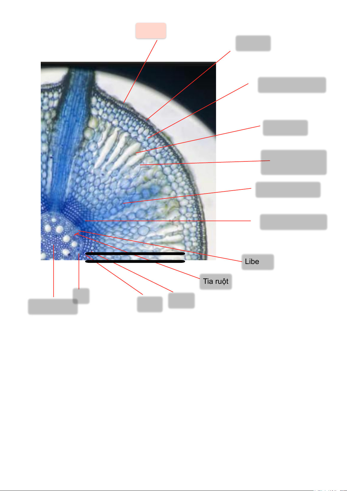- Bó libe, gỗ: xếp rời nhau và xen kẻ với nhau tạo thành vòng tròn ngay sát lớp trụ bì