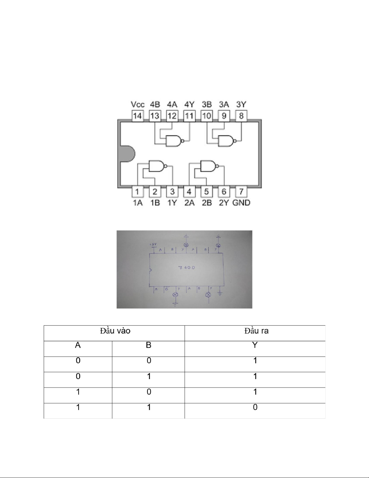 1. IC 7400- IC chứa cổng NAND: Sơ đồ chân: -Sơ đồ lắp ráp: Kết quả thực hành: