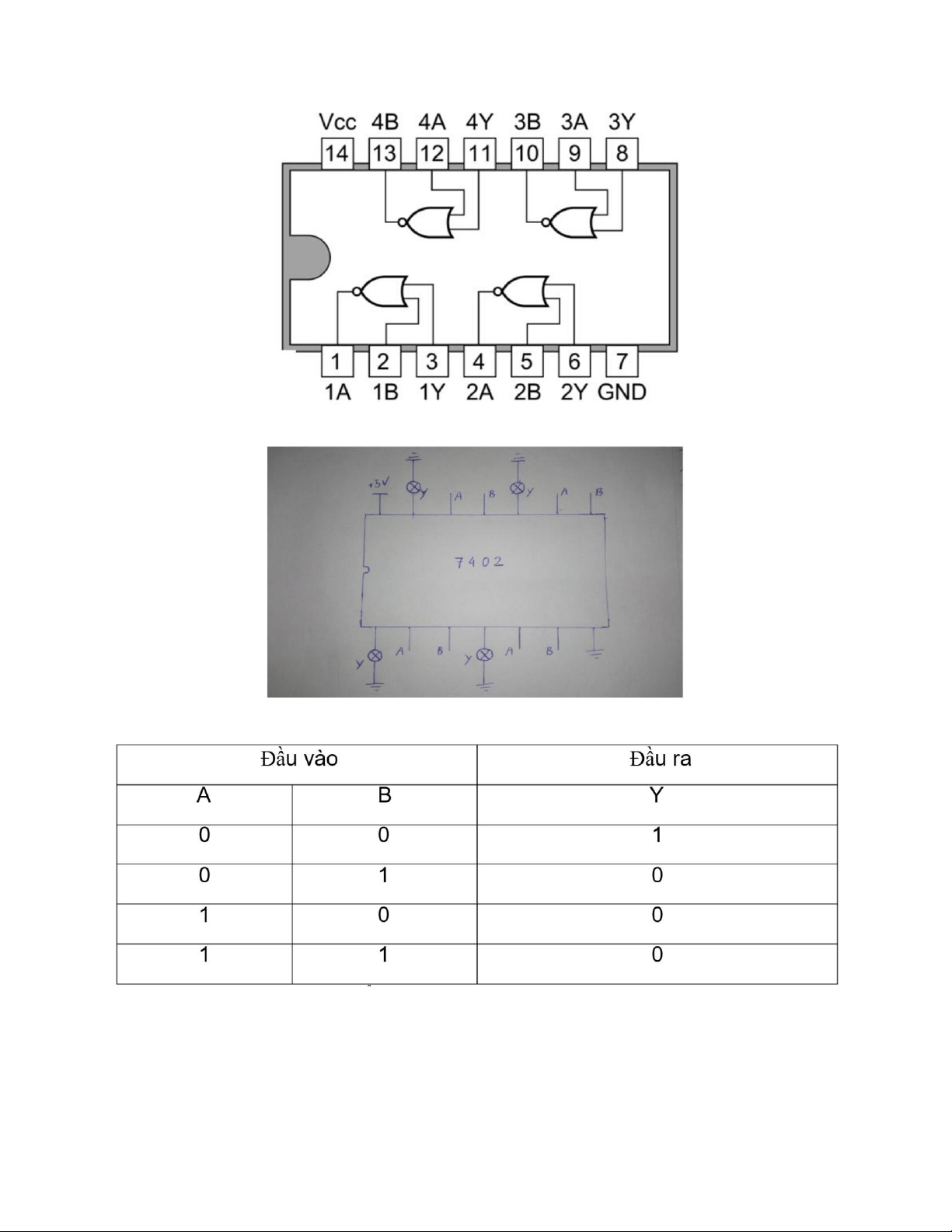 2. IC 7402- IC chứa cổng NOR-Sơ đồ chân: lOMoAR cPSD| 59691467 -Sơ đồ lắp ráp: Kết quả thực hành: