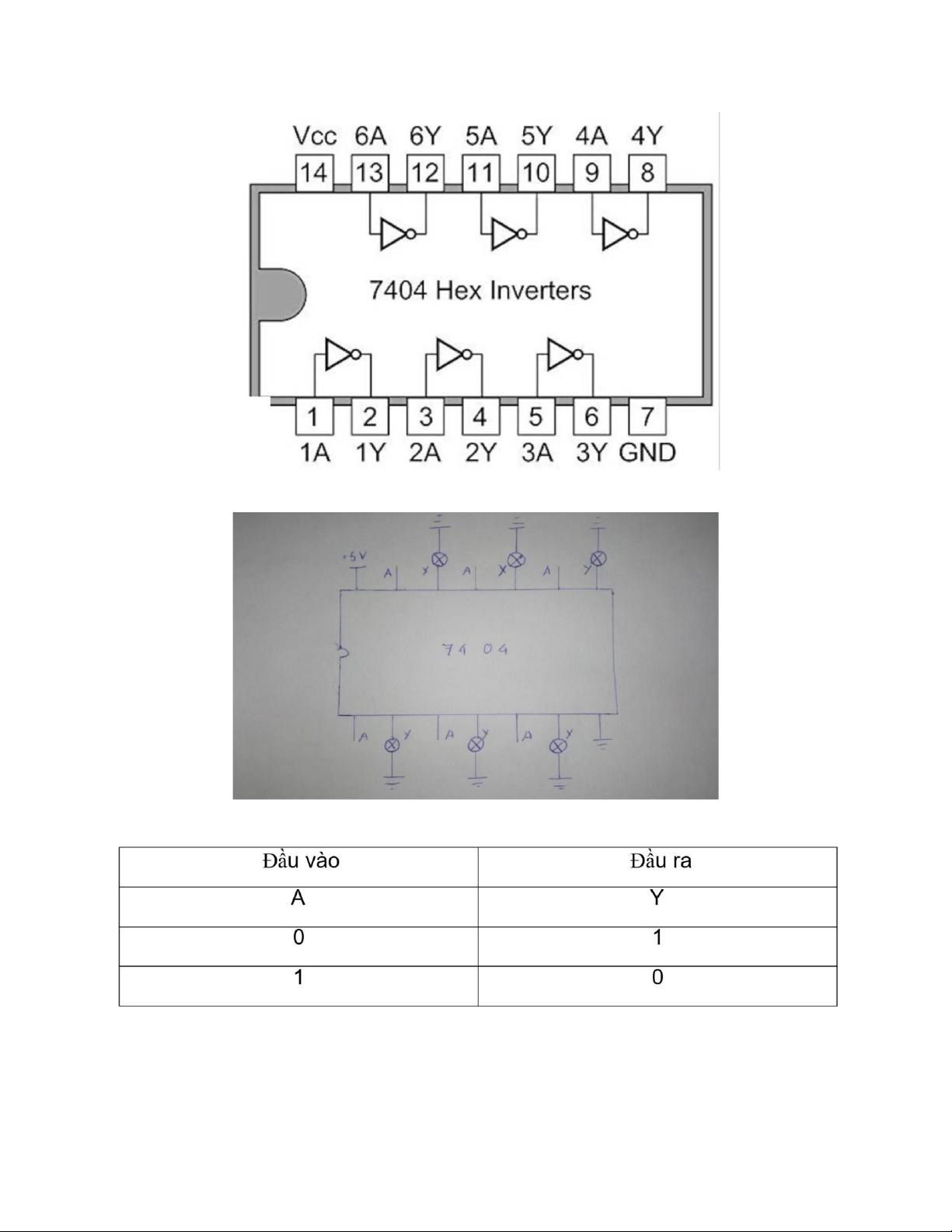 3. IC 7404- IC chứa cổng NOT-Sơ đồ chân: lOMoAR cPSD| 59691467 -Sơ đồ lắp ráp: Kết quả thực hành: