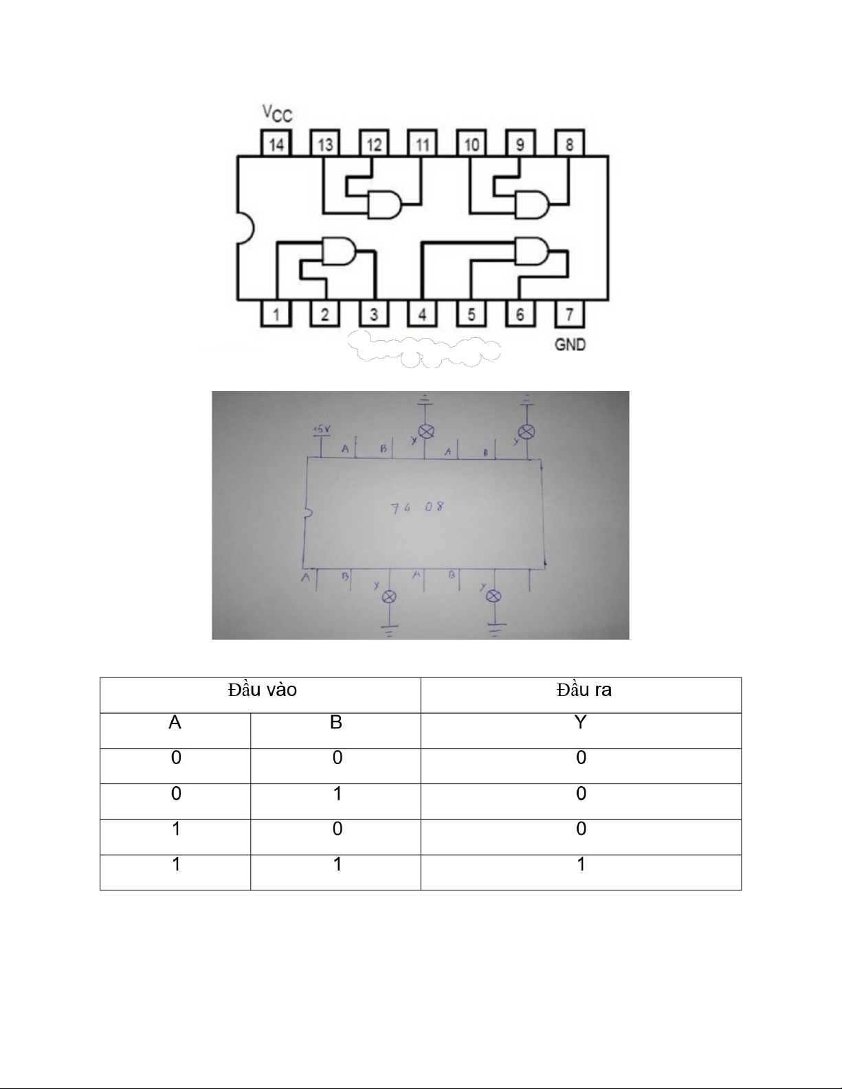 4. IC 7408- IC chứa cổng AND-Sơ đồ chân: lOMoAR cPSD| 59691467 -Sơ đồ lắp ráp: Kết quả thực hành: