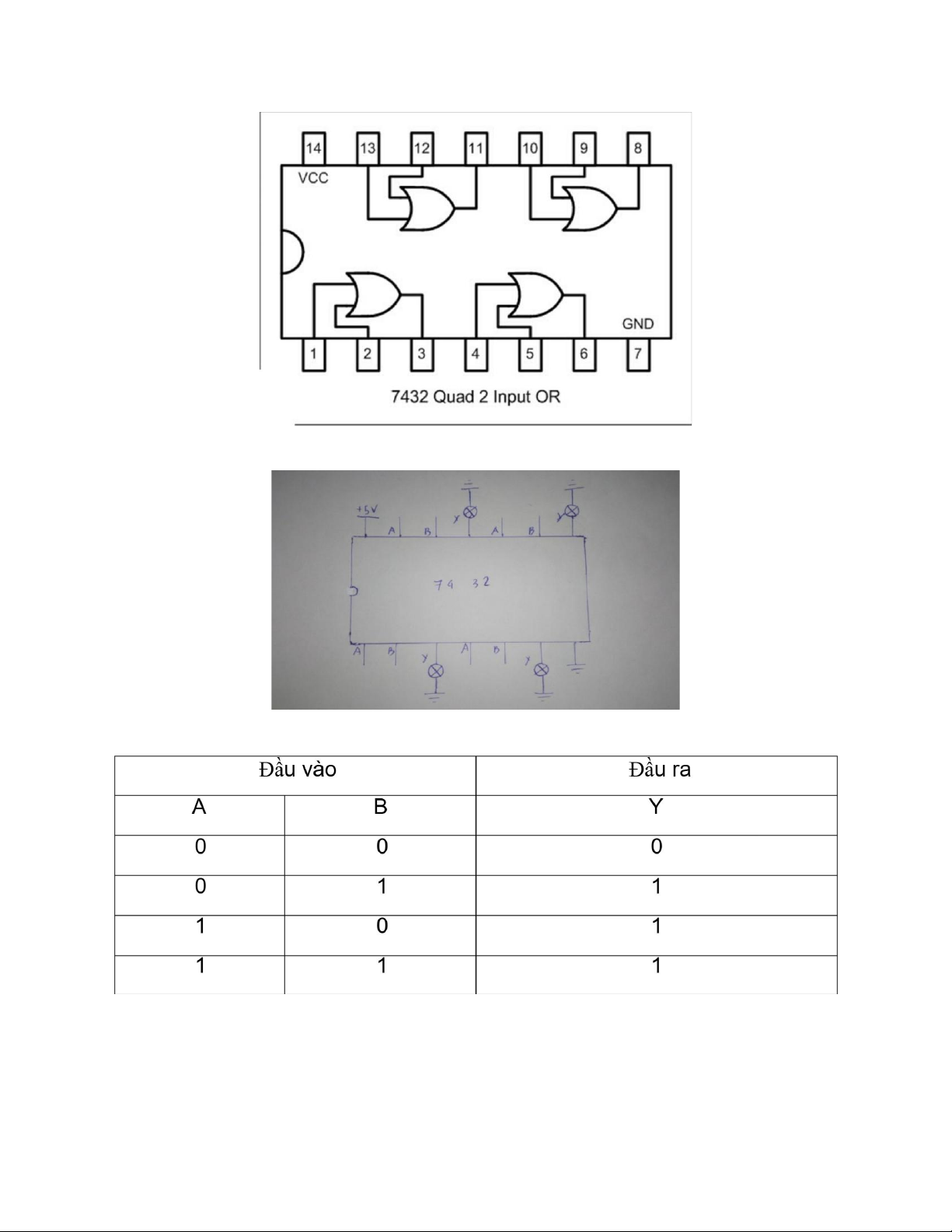 5. IC 7432- IC chứa cổng OR -Sơ đồ chân: lOMoAR cPSD| 59691467 -Sơ đồ lắp ráp: Kết quả thực hành: