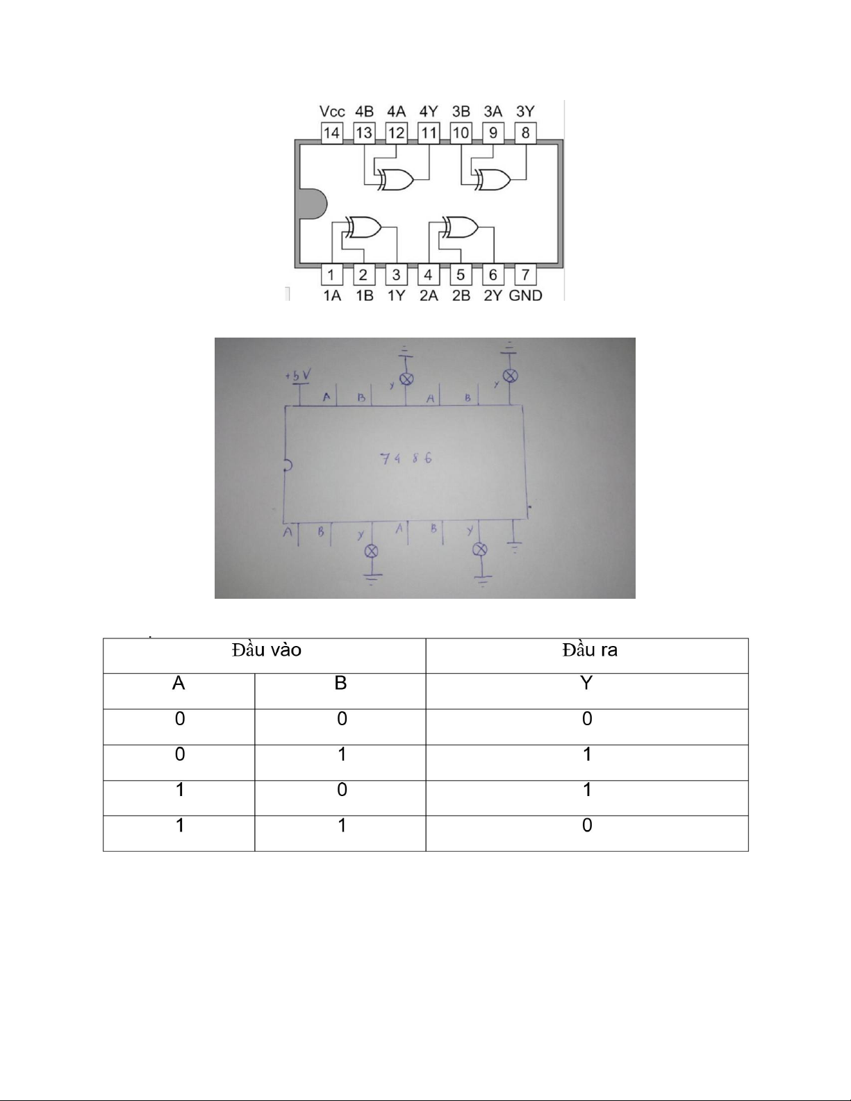 6. IC 7486- IC chứa cổng XOR -Sơ đồ chân: lOMoAR cPSD| 59691467 -Sơ đồ lắp ráp: Kết quả thực hành: