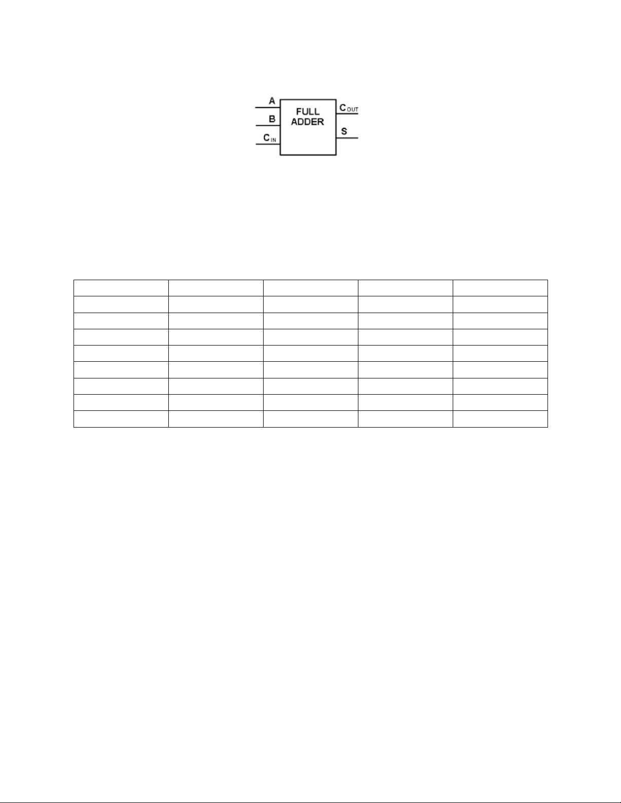 cout: là số nhớ đưa đến cột có trọng số lớn hơn bên cạnh. S: là tổng Bảng trạng thái A B CIN COUT S 0 0 0 0 0 0 0 1 1 0 0 1 0 1 0 0 1 1 0 1 1 0 0 1 0 1 0 1 0 1 1 1 0 0 1 1 1 1 1 1 Ta có: S=A⊕B⊕Cin Cout=AB+ACin+BCin Sơ đồ thiết kế: lOMoAR cPSD| 59691467 Sơ đồ lắp ráp: