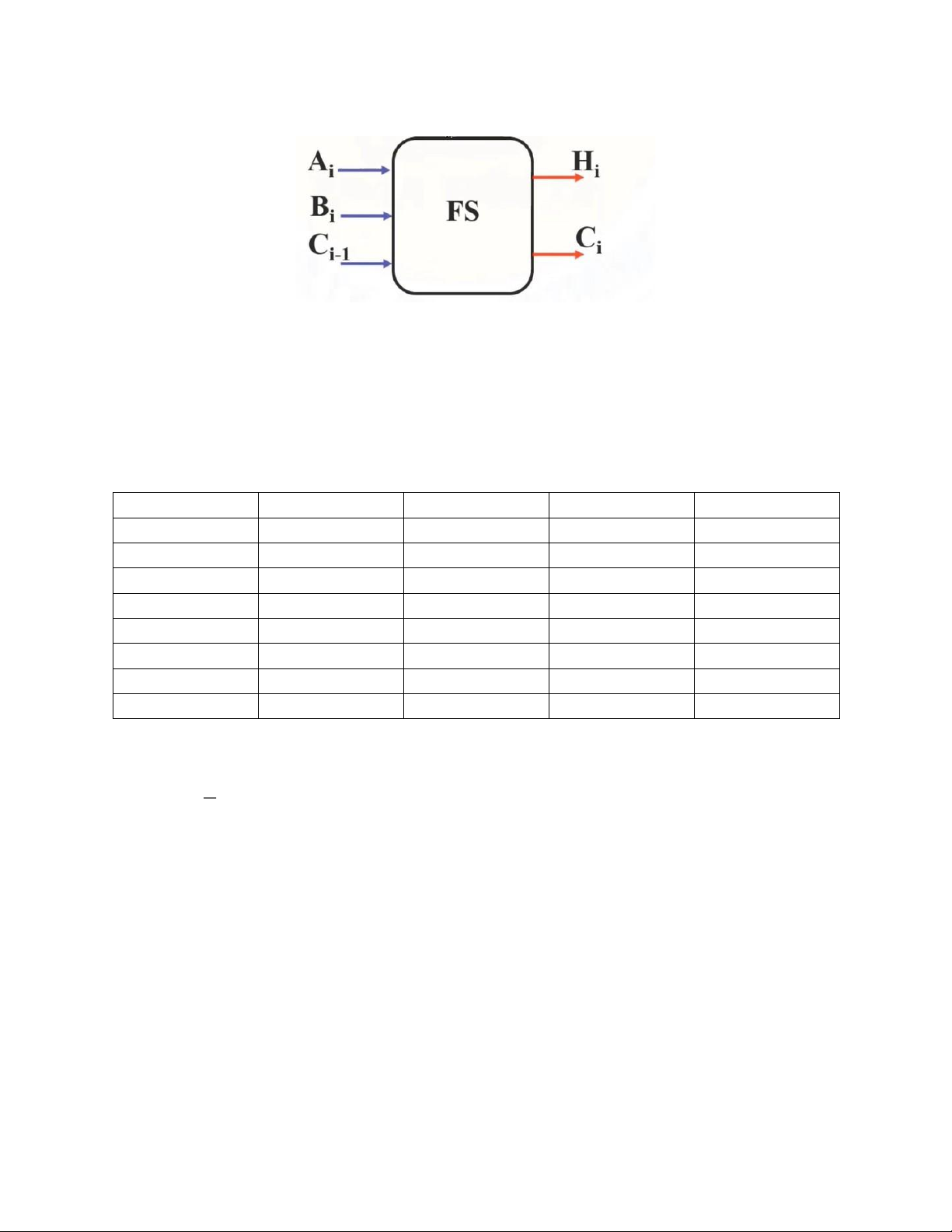 Ci: là số nhớ đưa đến cột có trọng số lớn hơn bên cạnh. H: là hiệu Bảng trạng thái Ai Bi Ci-1 H Ci 0 0 0 0 0 0 0 1 1 1 0 1 0 1 1 0 1 1 0 1 1 0 0 1 0 1 0 1 0 0 1 1 0 0 0 1 1 1 1 1 Ta có H=Ai⊕Bi⊕Ci-1