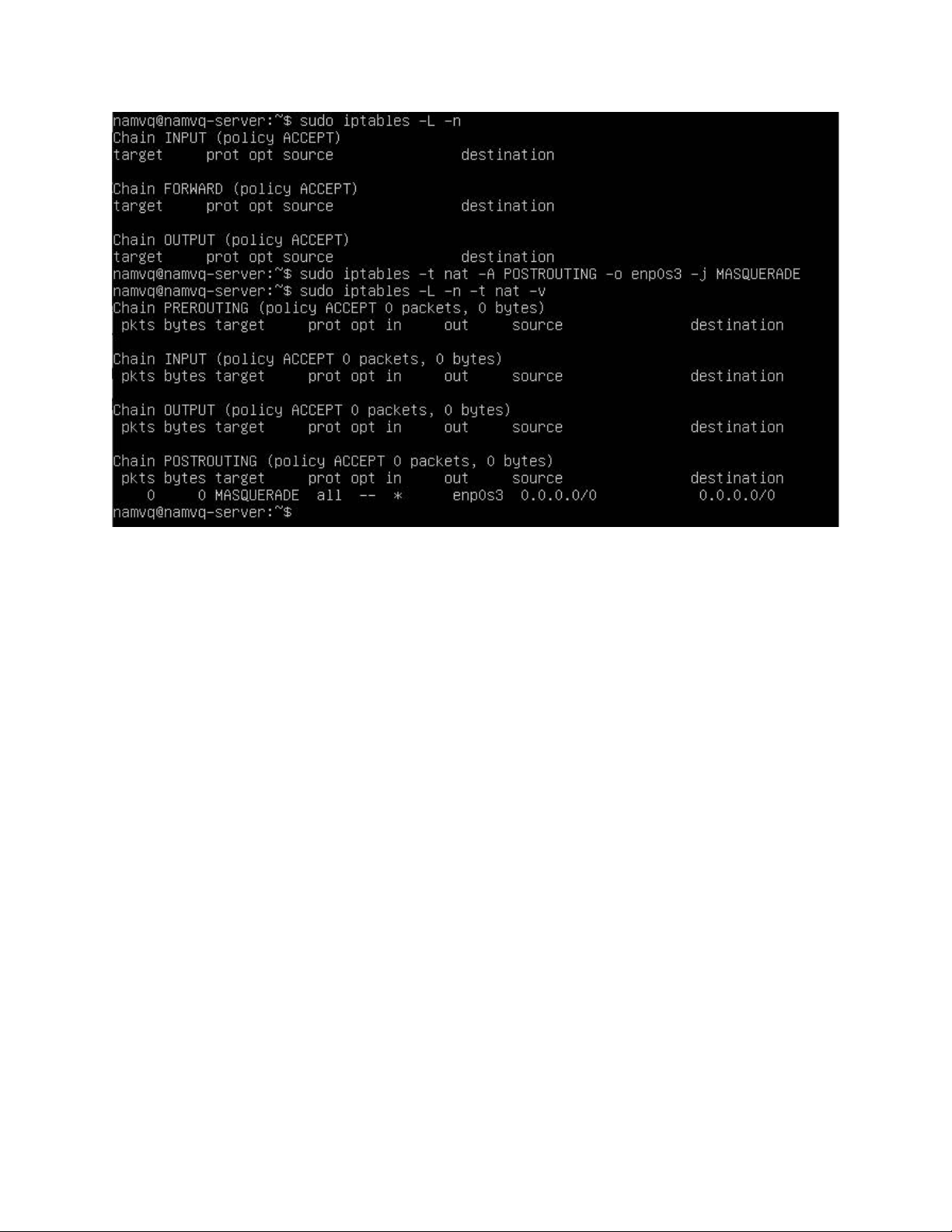 cả các gói tin IP khi đi ra khỏi kết nối enp0s3 sẽ được áp dụng cơ chế NAT (thay