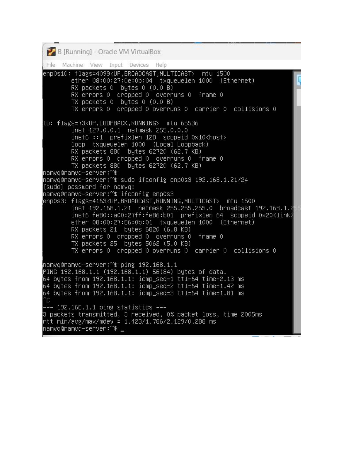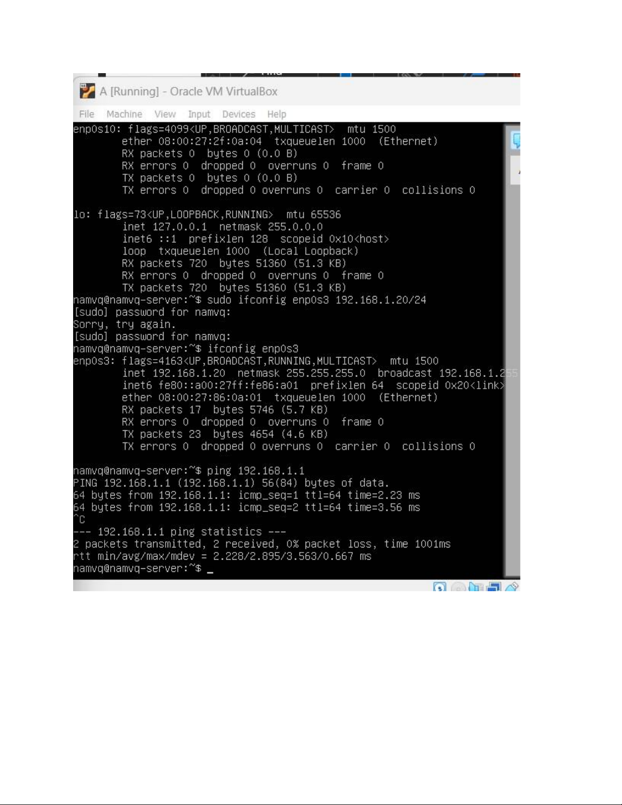 Thiết lập cấu hình địa chỉ IP cho enp0s3 theo lan01 (192.168.1.0) và ping kiểm tra