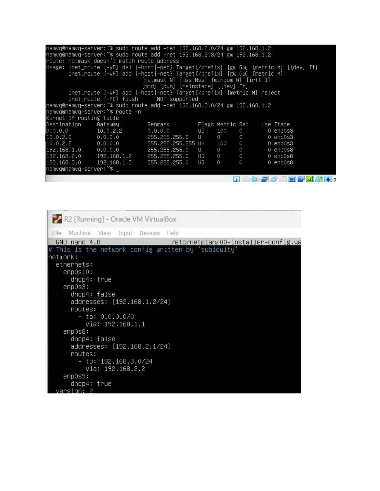 Cấu hình network bvaf bảng routing trên R2, sử dụng netplan thay cho command line: lOMoAR cPSD| 61601435