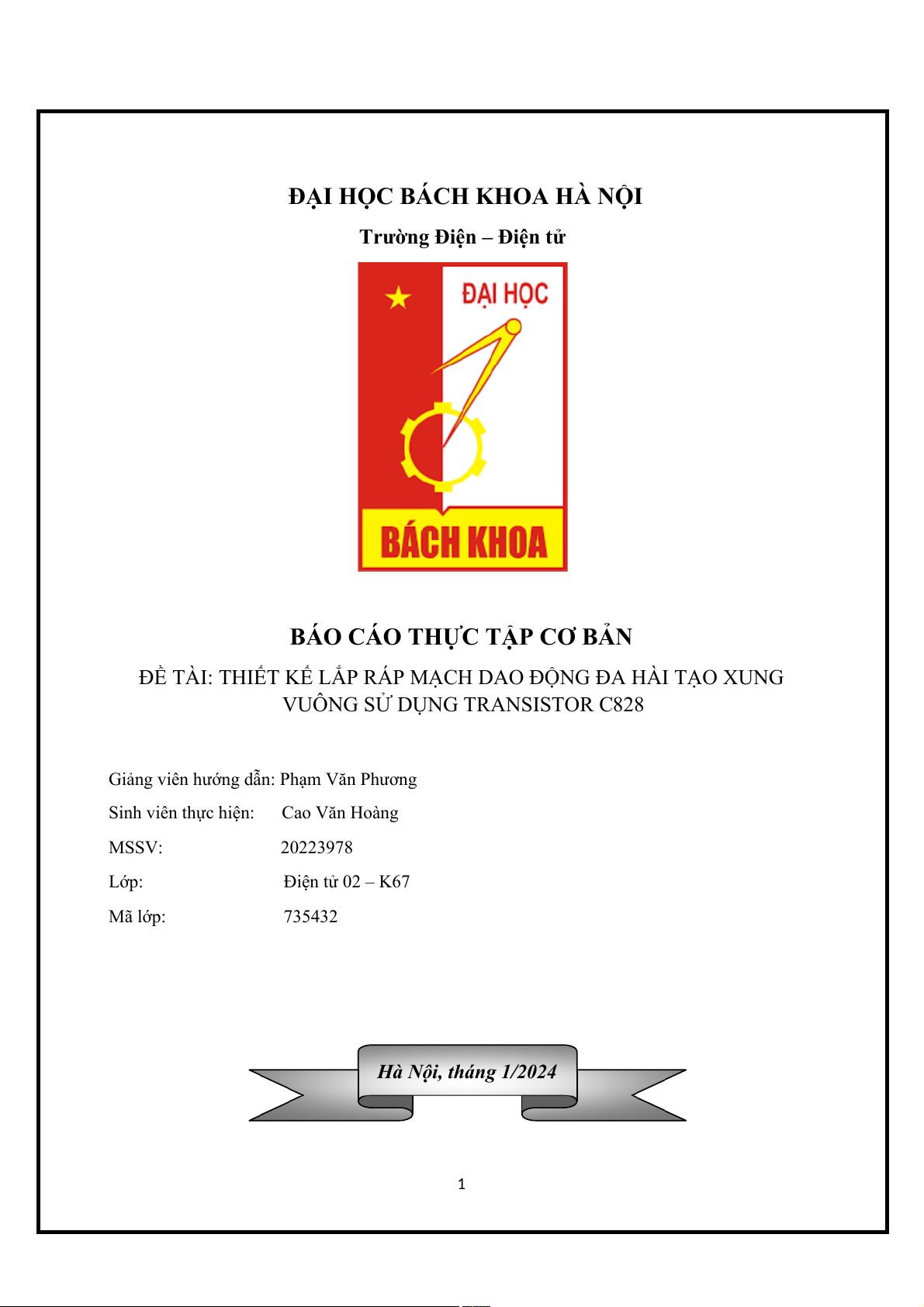 Tên báo cáo: Thiết kế lắp ráp mạch dao động đa hài tạo xung vuông sử dụng đèn bán dẫn C828
