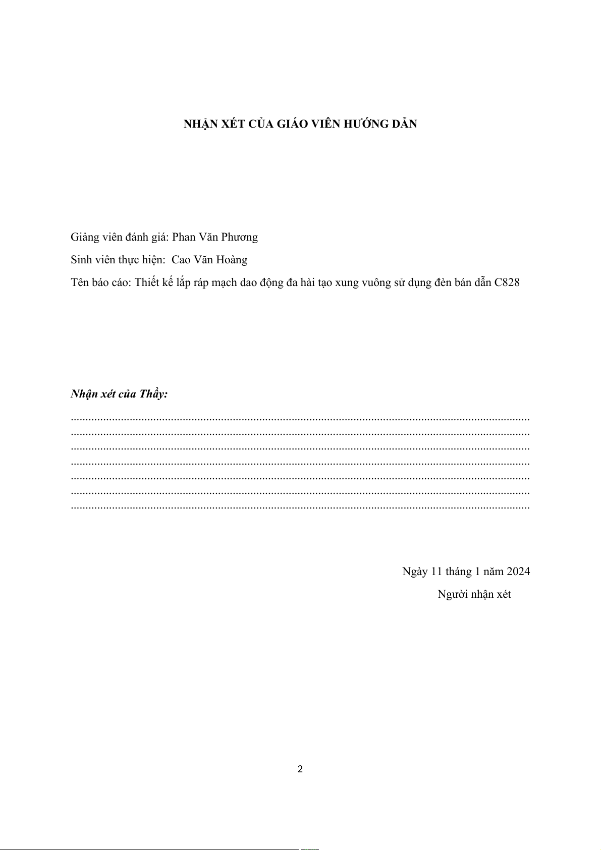 ............................................................................................................................................................ Ngày 11 tháng 1 năm 2024 Người nhận xét 2 Mục lục