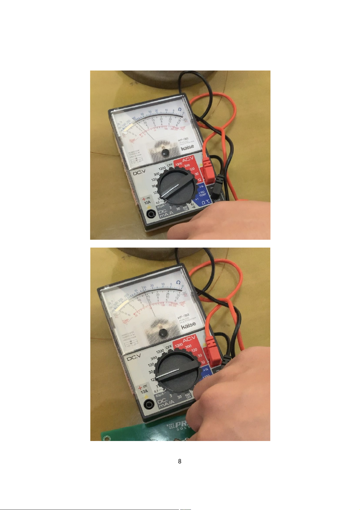 - Cấp nguồn 6V vào mạch. Sau khi đèn sáng luân phiên thì đo Ube ở thang 3 VDC và Uce