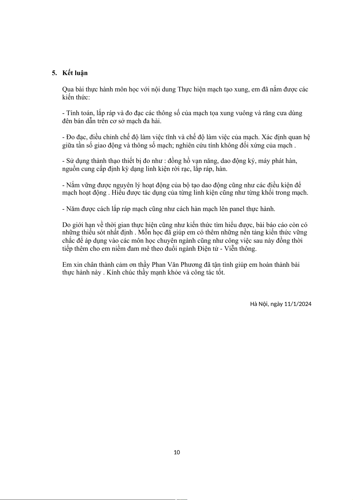 thực hành này . Kính chúc thầy mạnh khỏe và công tác tốt. Hà Nội, ngày 11/1/2024 10