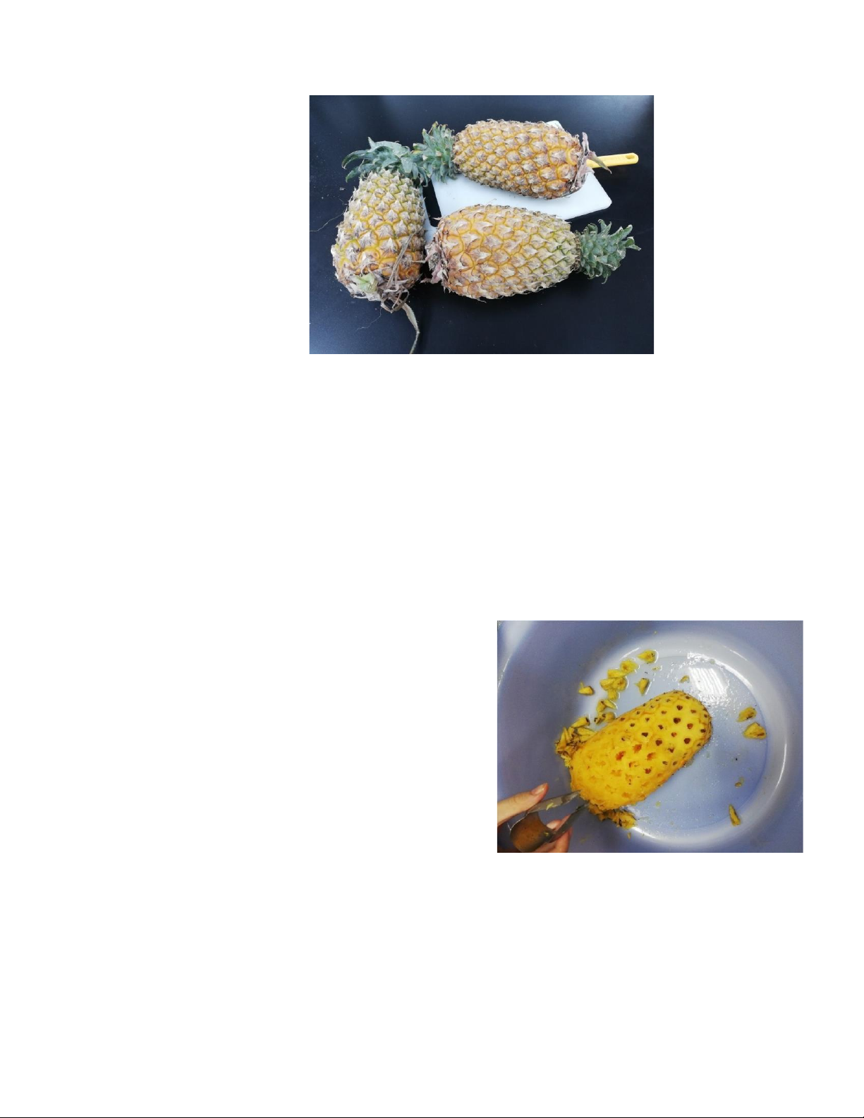 -Cắt hai đầu: dứa được cắt hai đầu với chiều dài lát cắt là 10-15mm (phần phía hoa dứa