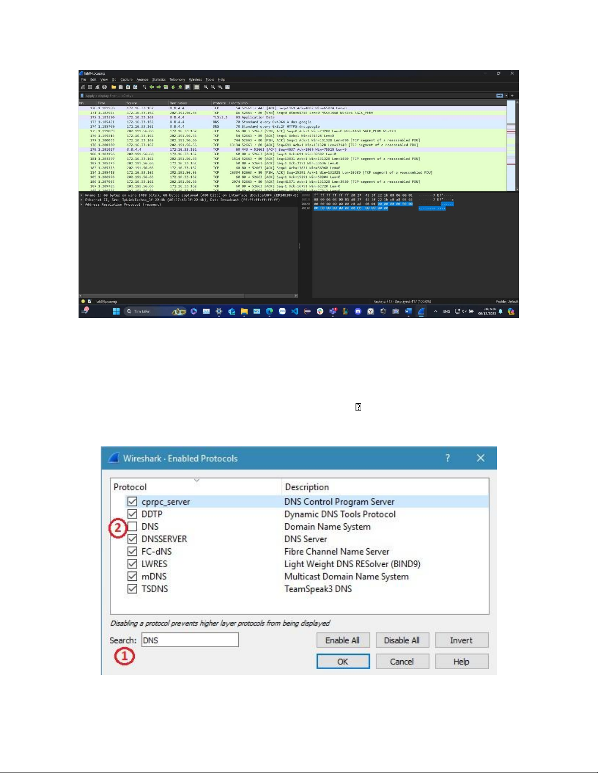 - Bước 1: Trên menu của Wireshark, chọn Analyze Enabled Protocols. Điền DNS