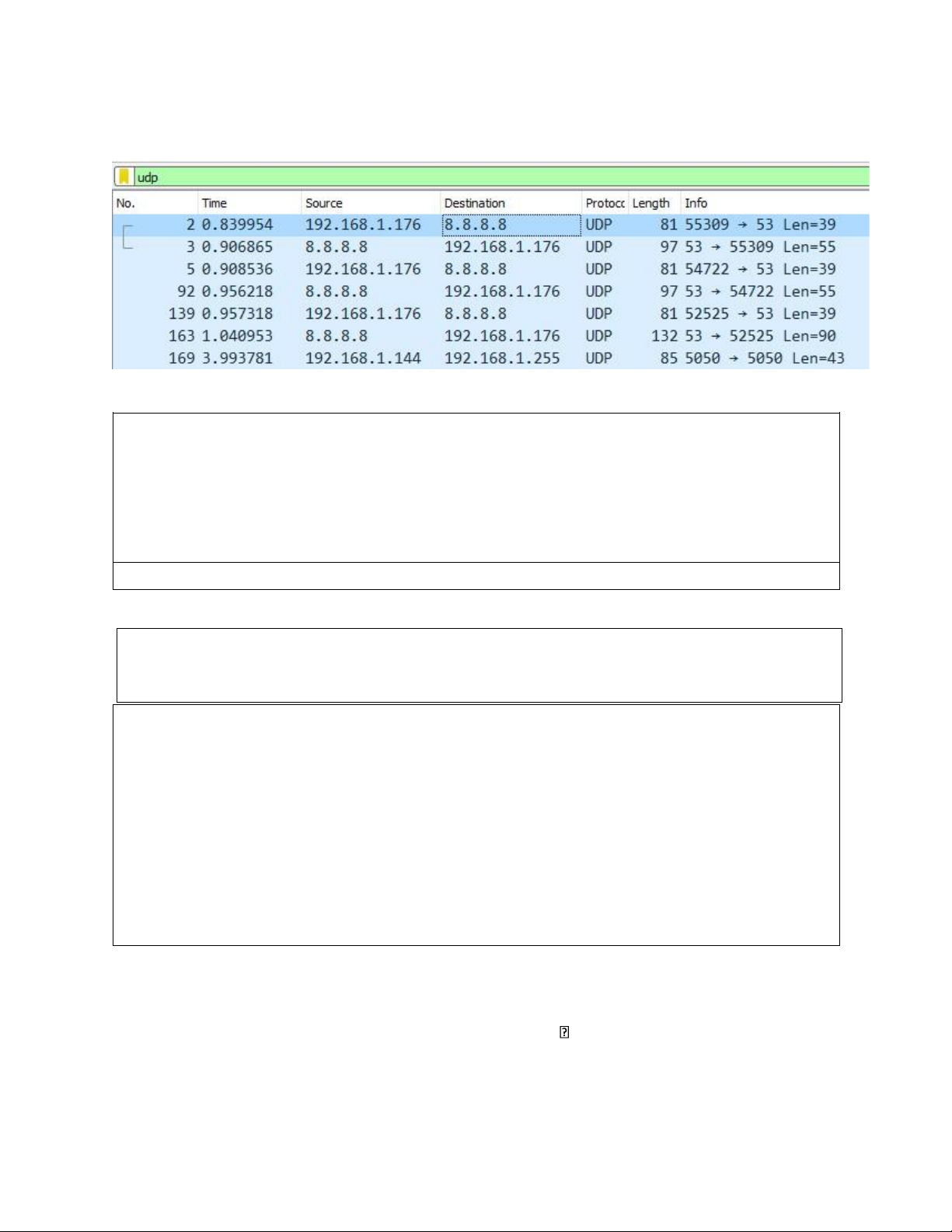- Bước 3: Chọn một gói tin UDP được gửi đi từ máy của sinh viên và trả lời câu hỏi 1.