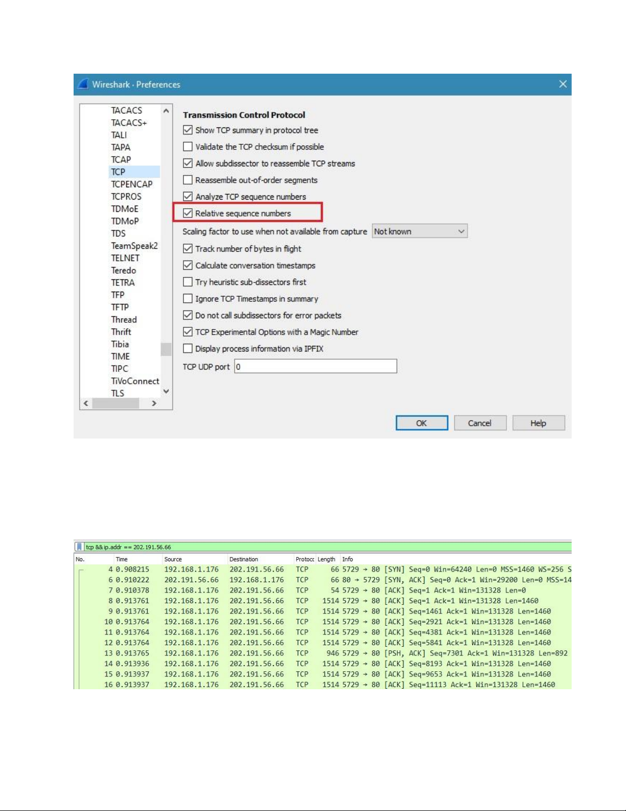 Preference, chọn TCP. Nhấn chọn mục Relative sequence numbers như hình sau: lOMoAR cPSD| 61552860