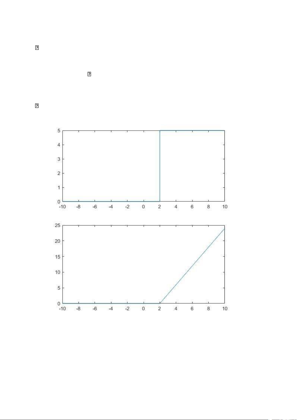 1. Hàm bước nhảy đơn vị function x=u(t) x=zeros(size(t)); x(t>=0)=1; 2. Hàm dốc đơn vị function x=r(t) x=t.*u(t) 3. Vẽ đồ thị t=- 10:0.001:10; y=5*u(t- 2);plot(t,y) y=3*r(t-2);plot(t,y)