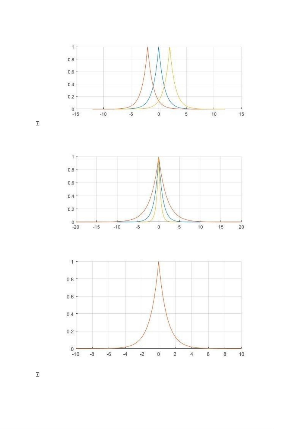 hold on;plot(t,x);plot(t-2,x);plot(t+2,x);grid on; 2. t=-10:0.01:10; x=exp(- abs(t));