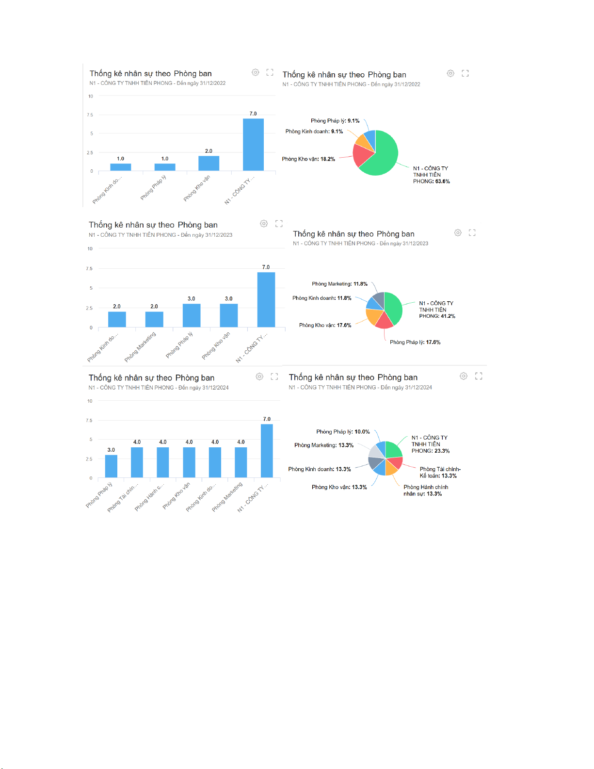 (Nguồn: Cơ cấu nhân sự theo phòng ban giai đoạn 2022-2024)