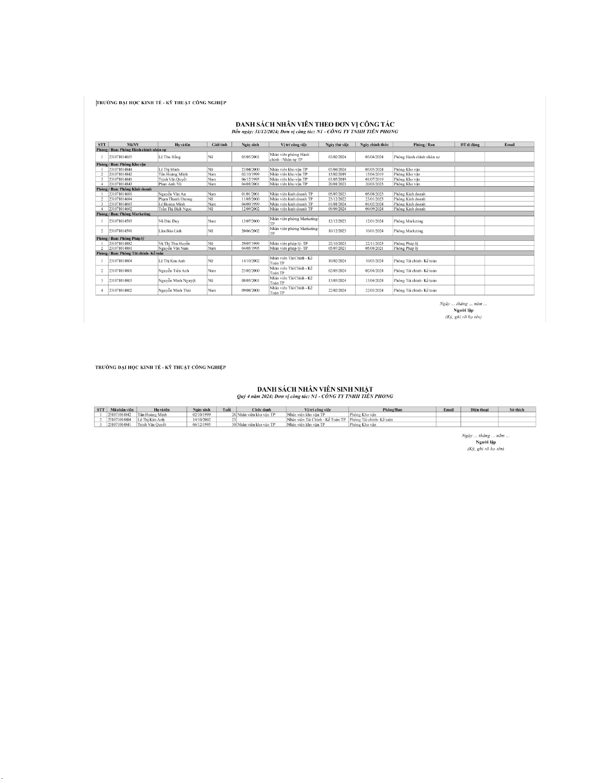 HỌC PHẦN THỰC HÀNH QUẢN TRỊ NHÂN LỰC