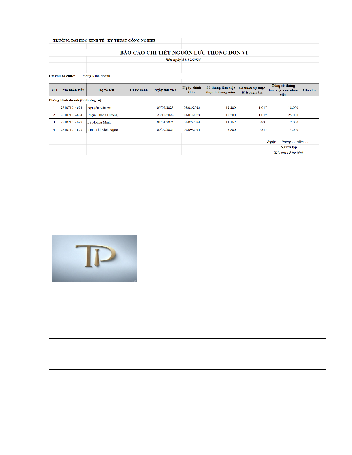 BÀI THỰC HÀNH 3: THỰC HÀNH XÂY DỰNG KẾ HOẠCH NHÂN LỰC