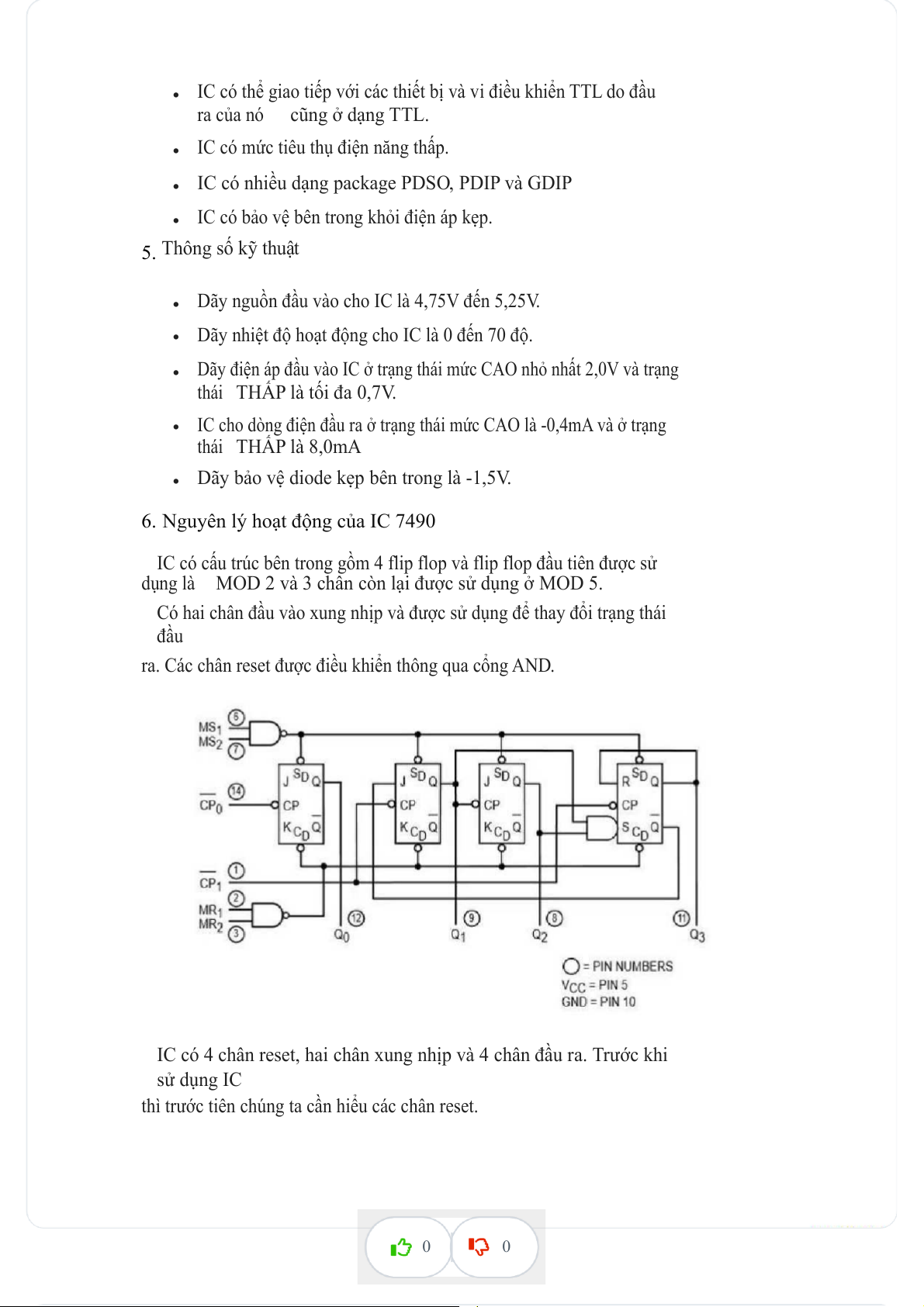 4. đặc tính bộ đếm nhị phân 74LS90 5. thông số kĩ thuật