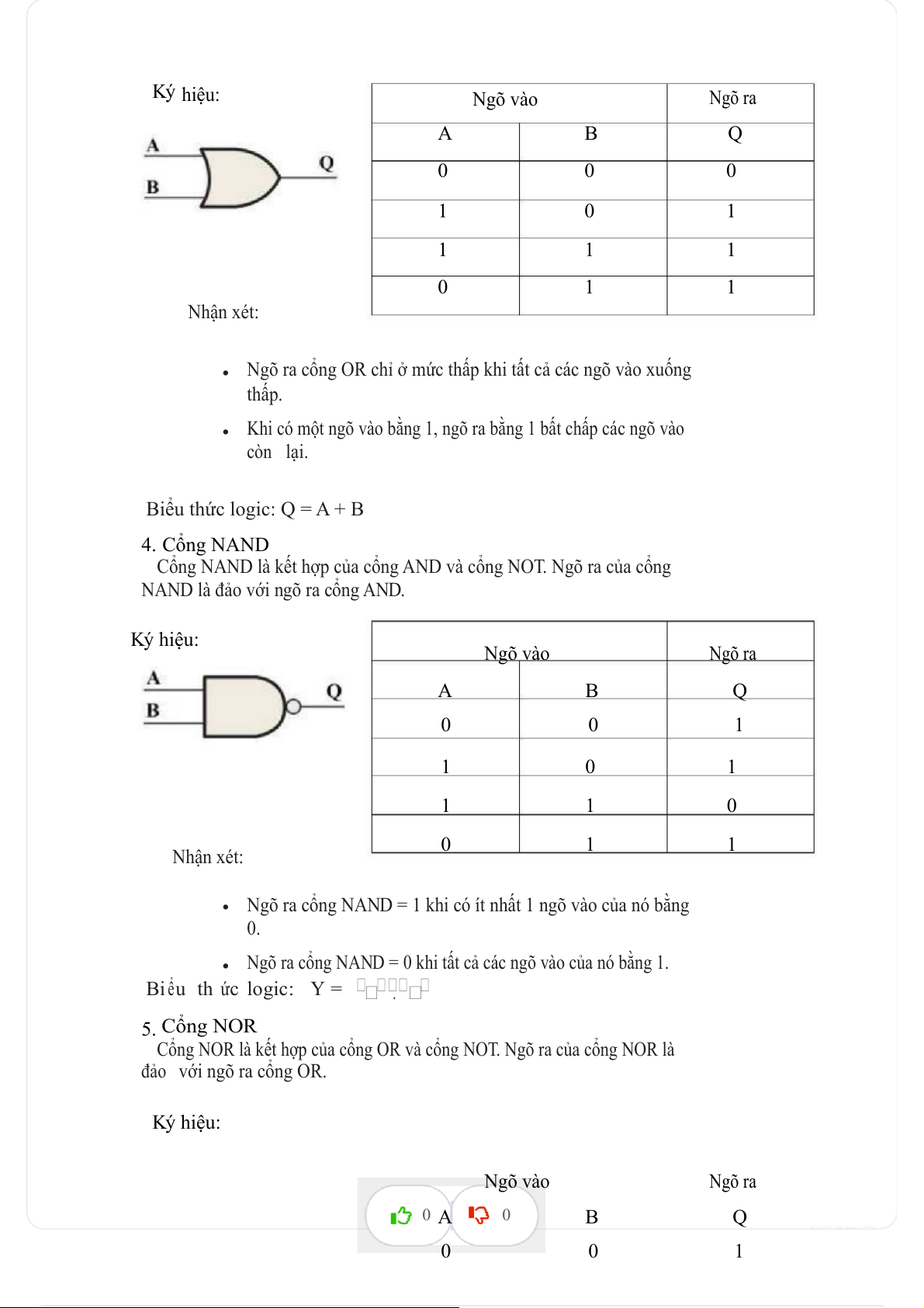 • Ngõ ra cổng OR chỉ ở mức thấp khi tất cả các ngõ vào xuống thấp.