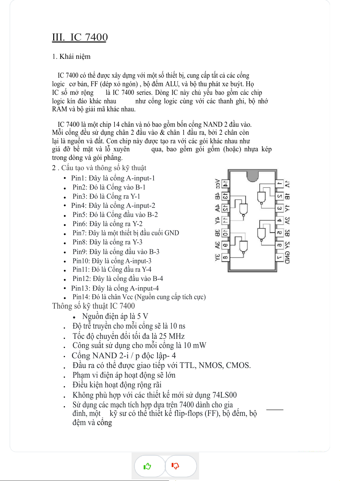 hợp chẳng hạn như mạch giải mã, mạch mã hóa, mạch đa hợp, mạch giải đa hợp,… III. IC 7400 1. Khái niệm