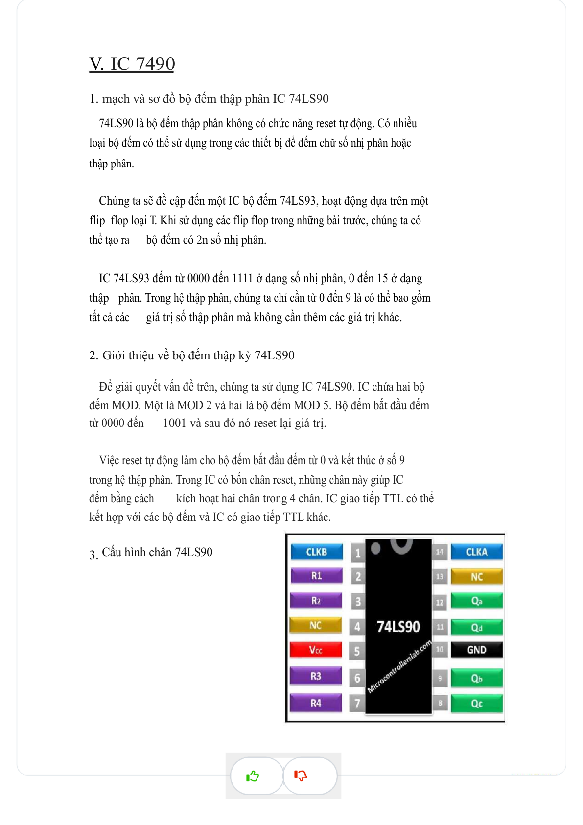3.Hoạt động khi kết nối với led 7 thanh 4.Ứng dụng V. IC 7490